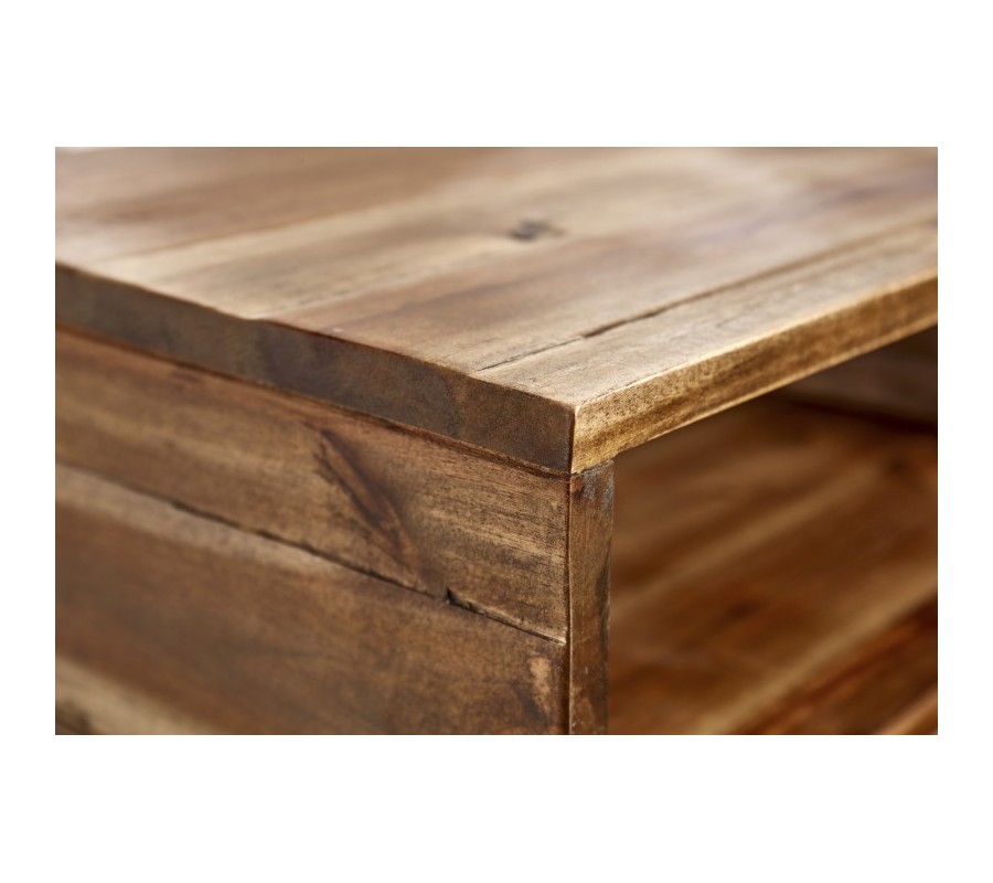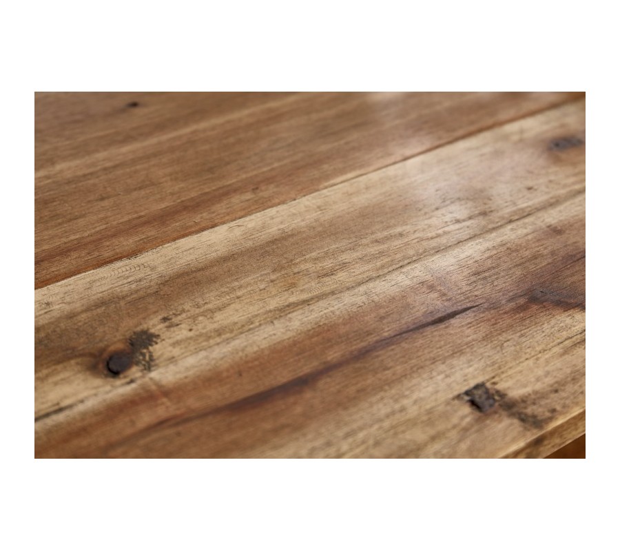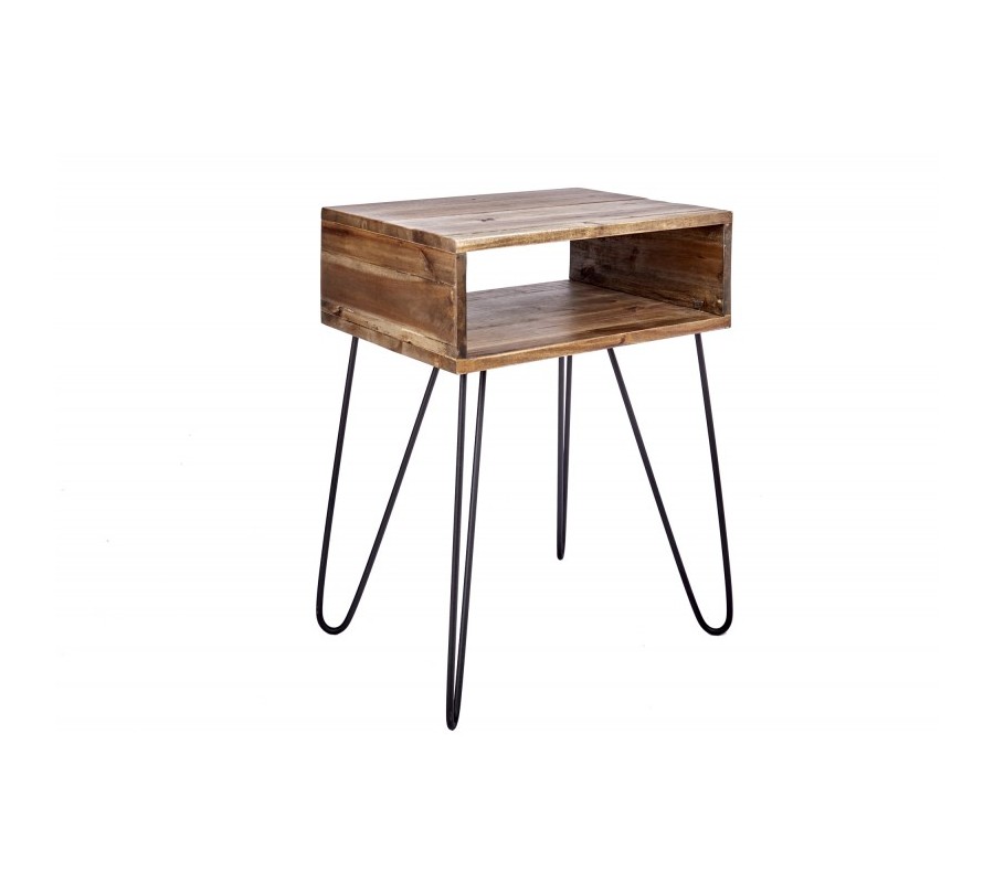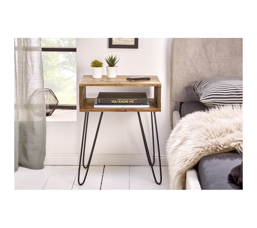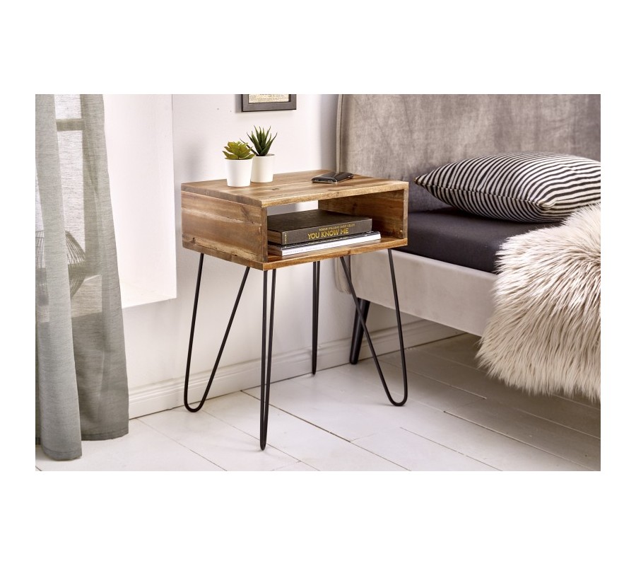 Štýlový nočný stolík Glendale je jedinečným kúskom, ktorý zapadne najmä do industriálne či alternatívne ladených spální. Je vyrobený z masívneho agátového dreva v naturálnom kolorite, na ktorého povrchu vidno zaujímavú štruktúru a kresbu. Prírodný vzhľad je kombinovaný s čiernymi kovovými nohami, ktoré vytvárajú industriálny efekt. Nočný stolík Glendale disponuje otvoreným úložným priestorom, ktorý možno využiť na uloženie kníh, časopisov či iných menších predmetov. Vynikne najmä v interiéroch zariadených v naturálnych farbách svetlých odtieňov.