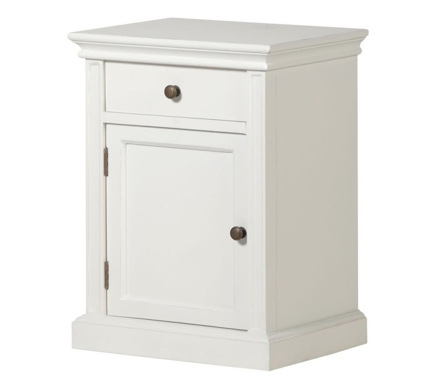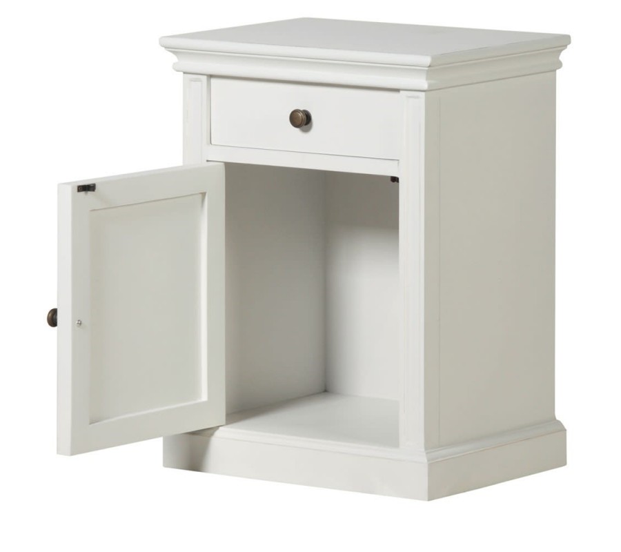 Provensálsky nočný stolík Amarante so zásuvkou a dvierkami v bielej farbe 60cm