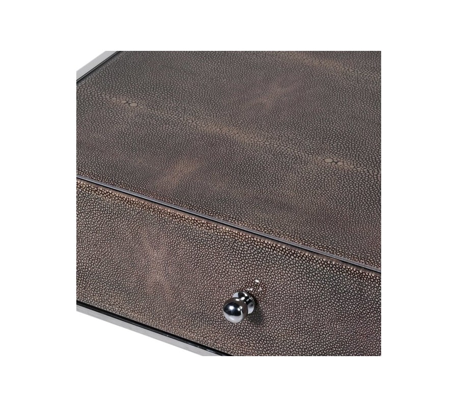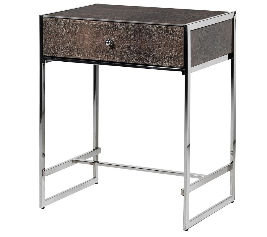 Štýlový nočný stolík Oracle je dizajnovým kúskom vhodným do každej modernej spálne. Zaujme najmä milovníkov nábytku z kovu, a to vďaka svojej chrómovej konštrukcii, ktorá je doplnená o telo so zaujímavou tmavohnedou glazúrou. Stolík tiež disponuje praktickou zásuvkou vhodnou na uschovanie drobnejších predmetov. Vďaka svojej univerzálnej farebnosti nebudete mať problém stolík doladiť do rôznofarebne ladených priestorov, avšak umiestnením v tmavších priestoroch dosiahnete jedinečný luxusný a elegantný vzhľad. Odporúčame stolík kombinovať napríklad s luxusnou čalúnenou posteľou a doladiť zrkadlovými či sklenenými doplnkami v modernom art-deco štýle.