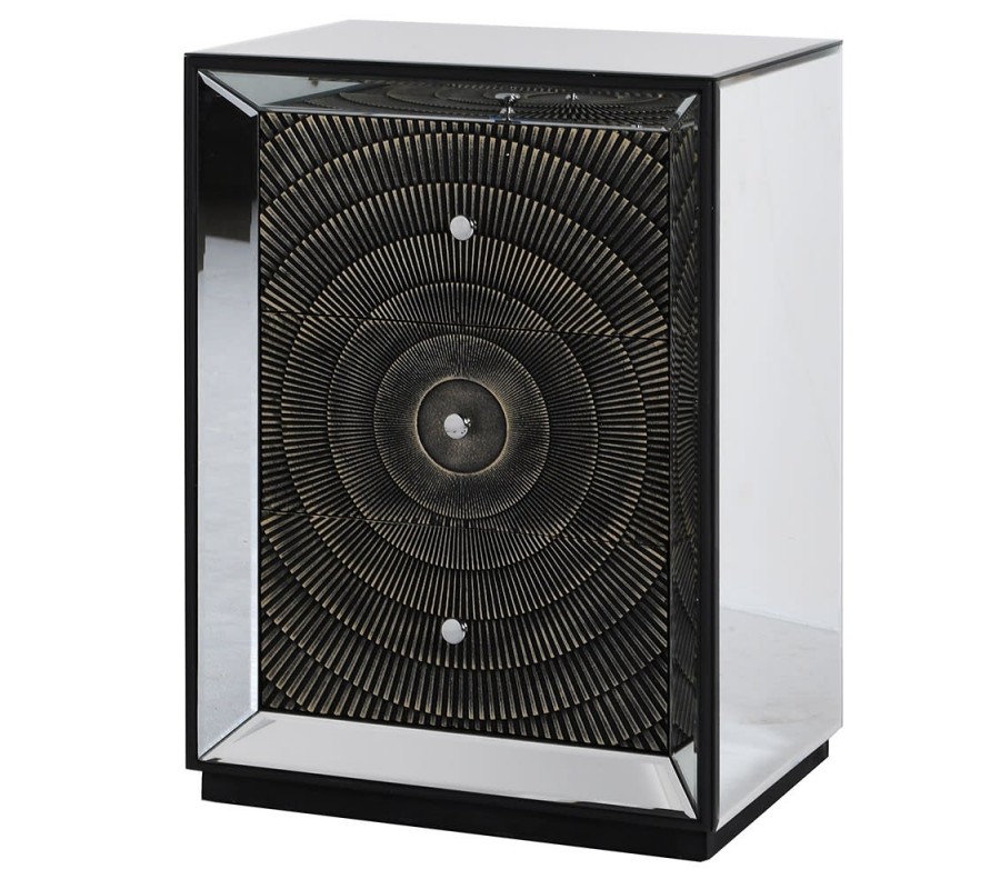 Zrkadlový dizajnový nočný stolík Espejo Nera s tromi zásuvkami a kruhovým vzorom 68cm