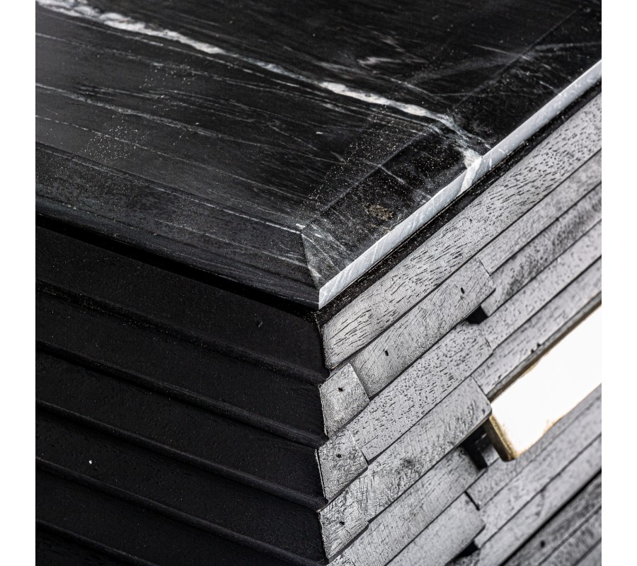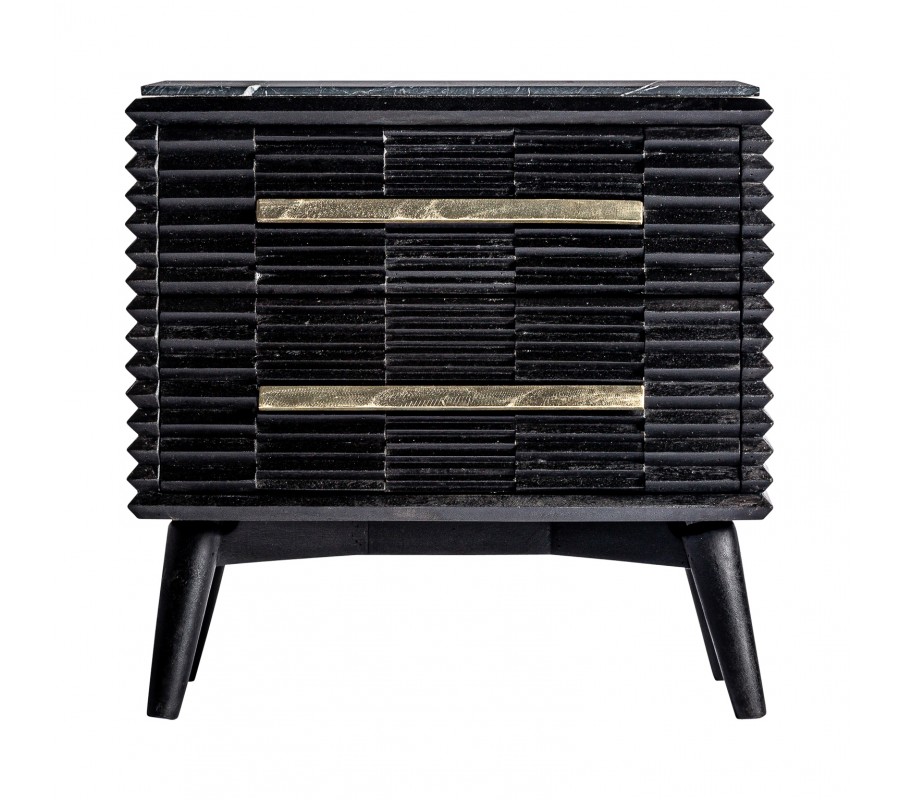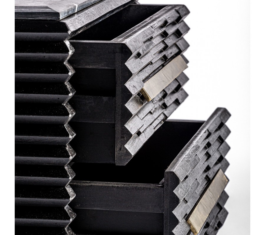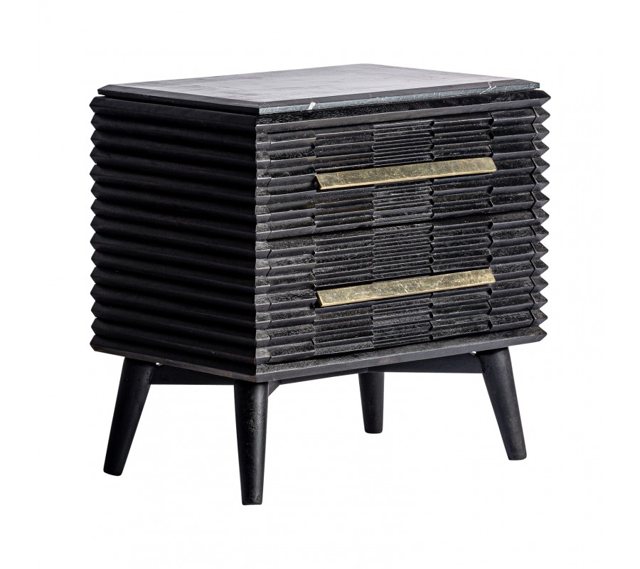 Luxusný art-deco nočný stolík Plissé Nero v čiernom prevedení z masívneho dreva s mramorovou vrchnou doskou 65cm