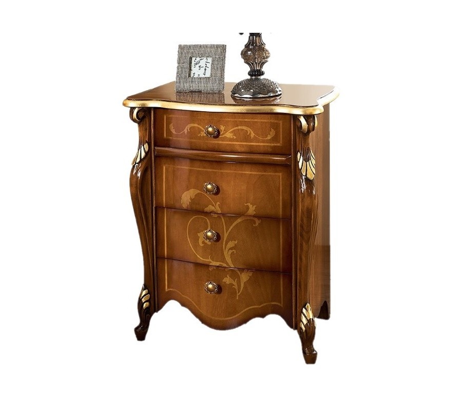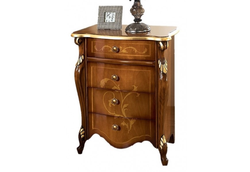 Masívny klasický nočný stolík Pasiones so štyrmi zásuvkami a vyrezávanými nožičkami 76cm