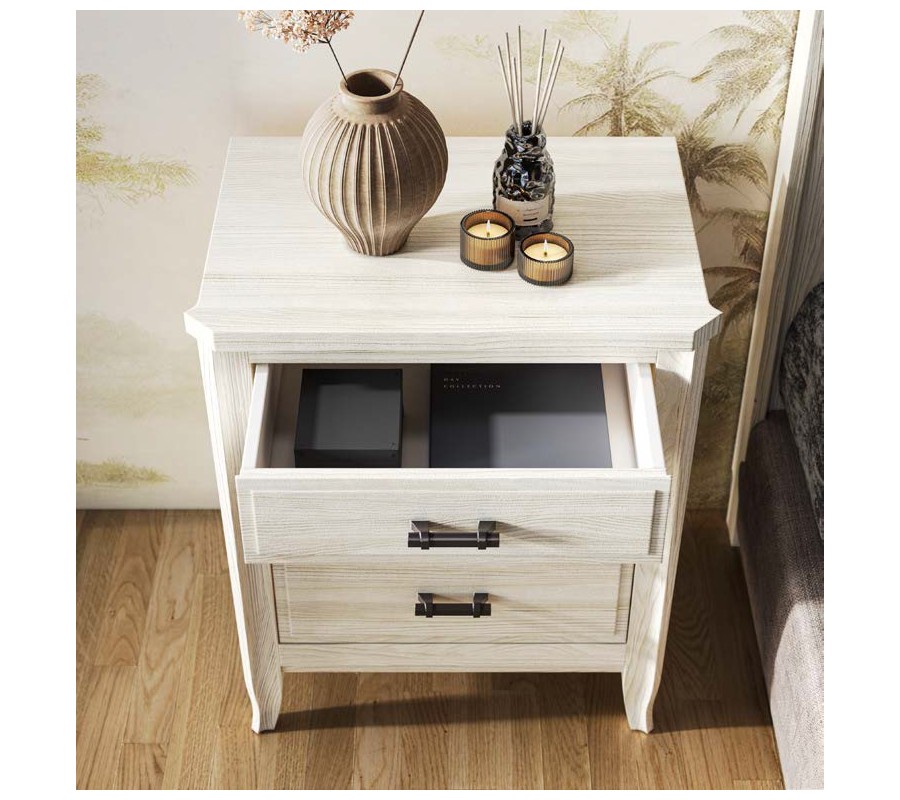 Nočný stolík Genova je skvelou voľbou pre tých, ktorí hľadajú spojenie moderného dizajnu s tradičnejšou estetikou, ktorá dodáva nábytku unikátny charakter. Hodí sa k posteliam s masívnym čelom či k vyrezávanému nábytku vo vidieckom štýle. Môžete pridať aj ďalšie kúsky z rovnakej kolekcie Genova pre dokonale zladený vizuál.