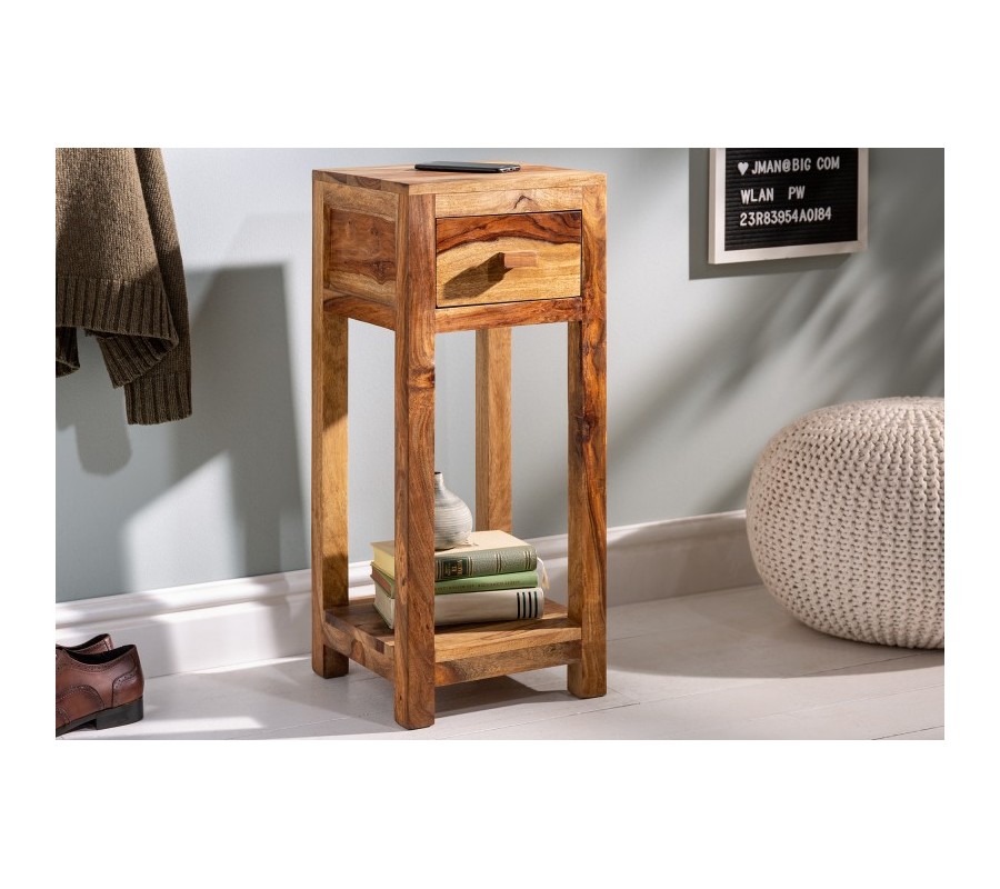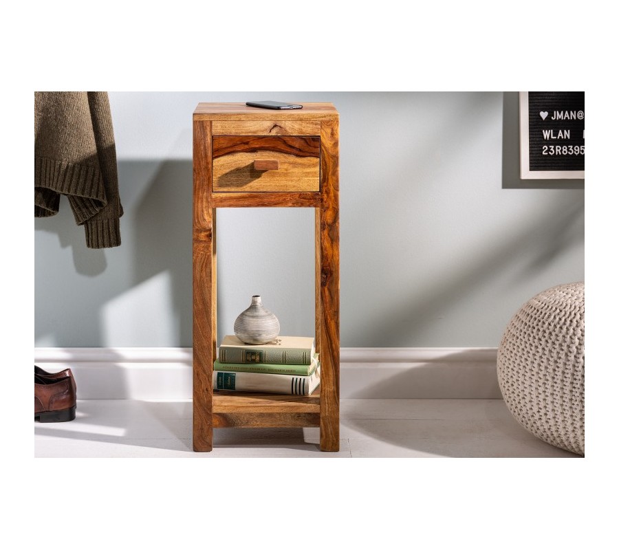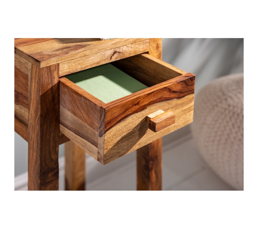 Masívny príručný stolík Makassar z dreva sheesham s praktickou zásuvkou 70cm