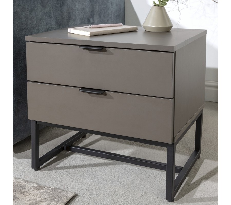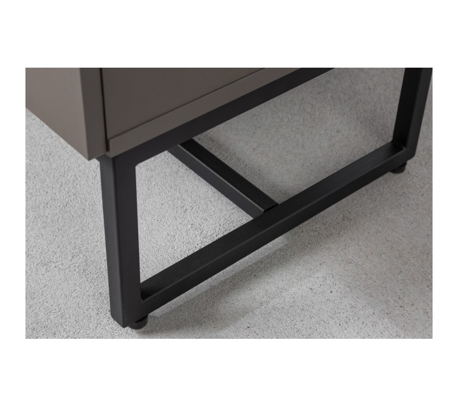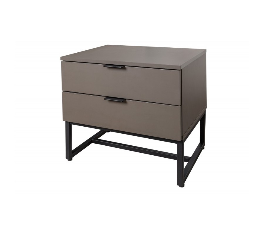 Moderný nočný stolík Marsh do spálne v sivej farbe s dvomi zásuvkami a s čiernou podstavou 50cm