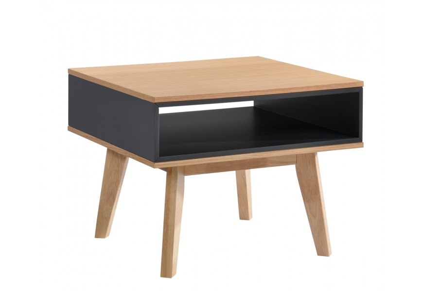 Škandinávsky príručný stolík Nordica Clara vo svetlo hnedej farbe s čiernym otvoreným priestorom prevedenie dub 60cm