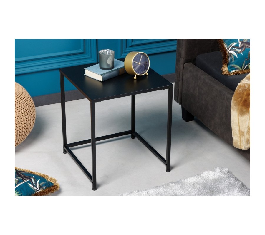 Ak ste milovníci moderného minimalistického nábytku, tak stolík z kolekcie kovového nábytku Industria Durante bude ten správny kúsok do Vašej spálne či obývačky. Dizajnový stolík Industria Durante v štvorcovom industriálnom prevedení disponuje spomenutým minimalistickým vzhľadom s jednoduchými priamymi líniami a ostrými hranami. Vyhotovenie stolíka je v čiernom kovovom prevedení, obohatenom o práškový nástrek pre zvýraznenie industriálneho vzhľadu. Vrchnu dosku stolíka Industria Durante chráni konštrukcia z kovu so štyrmi spojenými nožičkami. Univerzálne vyhotovenie stolíka Industria Durante Vám zaručí ľahkú kombinovateľnosť v spálni ako nočný stolík, alebo v obývačke ku kreslu ako príručný stolík. Kovový vzhľad stolíka Industria Durante odporúčame kombinovať s tmavo čalúnenými sedačkami, kreslami a posteľami, a taktiež s masívnym nábytkom s kovovými nožičkami a podstavami.