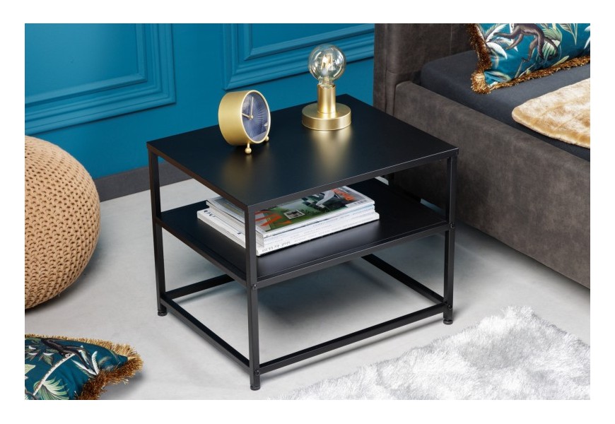 Industriálny štvorcový nočný stolík z kolekcie Industria Durante vďaka svojmu čiernemu ľahko kombinovateľnému vyhotoveniu perfektne doplní spálne v industriálnom alebo modernom prevedení. Nočný stolík Industria Durante sa pýši konštrukciou z čierneho kovu, ktorý je obohatený o práškový nástrek pre vyzdvihnutie drsného industriálneho vzhľadu. Nočný stolík Industria Durante taktiež disponuje nižšou doskou, ktorá ponúkne úložný priestor s maximálnou výškou 15 centimetrov. Vďaka svojmu minimalistickému, univerzálnemu dizajnovému vyhotoveniu môžete využiť nočný stolík Industria Durante kombinovať v moderných a industriálnych spálňach, alebo taktiež aj v obývačkách ako príručný stolík. Kovový vzhľad stolíka Industria Durante odporúčame kombinovať s tmavo čalúnenými sedačkami, kreslami a posteľami, a taktiež s masívnym nábytkom s kovovými prvkami.