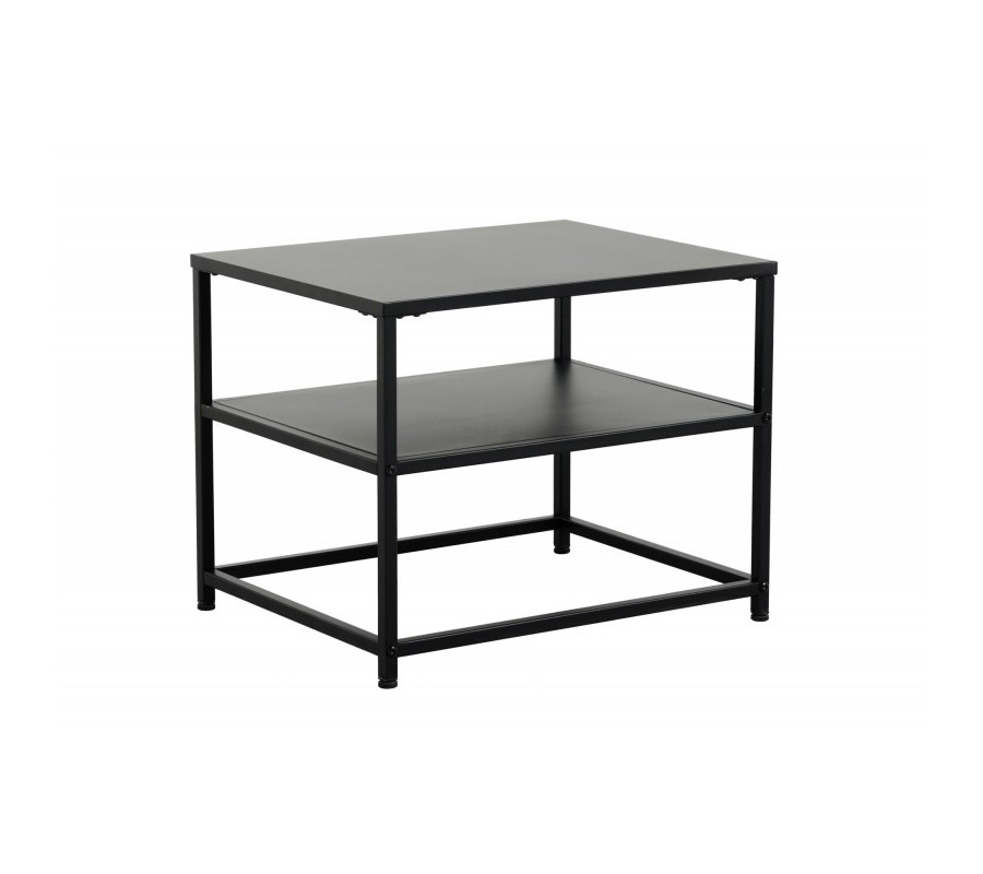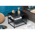 Moderný kovový nočný stolík Industria Durante v industriálnom štýle s dvoma doskami čierny 50cm