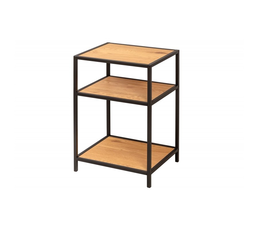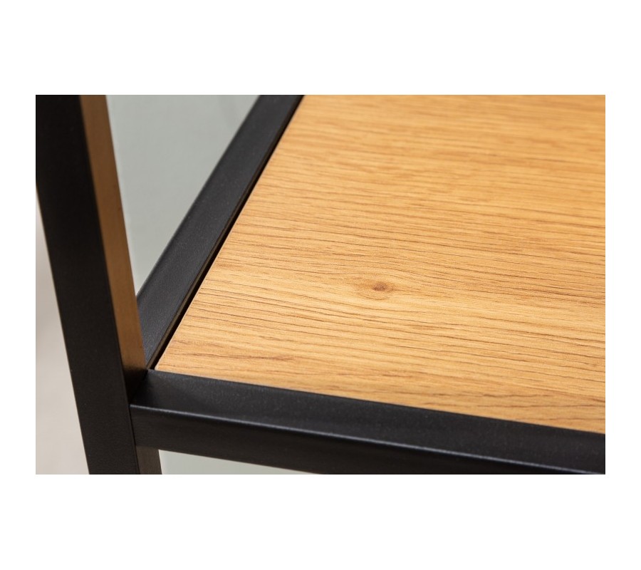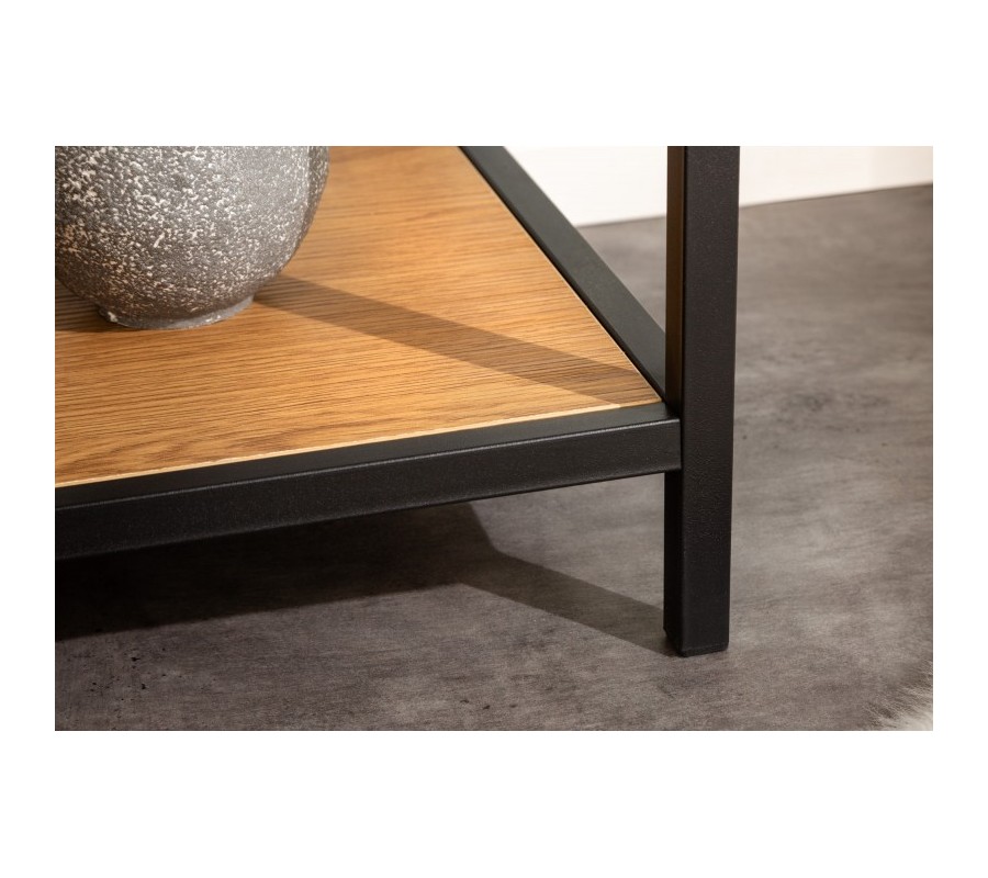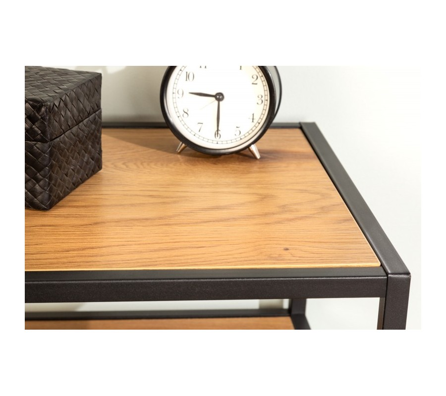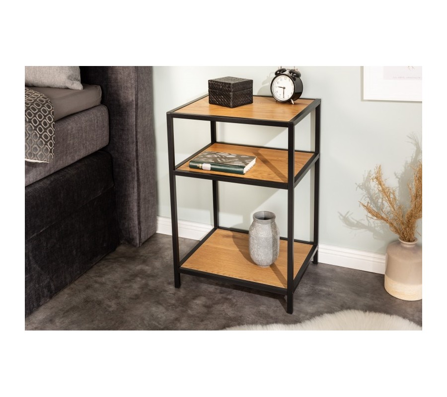 Pre každý industriálne zariadený interiér odporúčame využiť dizajnový nočný stolík Industria Natura z kvalitne dyhovaného dreva čo zaručí prírodný vzhľad s drsnými kovovými prvkami. Industriálny nočný stolík Industira Natura je vyrábaný zo spomenutého bledo hnedého dreva, chráneného kvalitnou dyhou v dubovom vyhotovení. Vrchnú dosku s dvoma poličkami chránia kovové nožičky s práškovým čiernym náterom, čo podčiarkne industriálny vzhľad stolíka. Vďaka svojmu univerzálnemu vzhľadu a prevedeniu dvoch otvorených poličiek s výškovým rozdielom 34 centimetrov môžete využiť nočný stolík Industria Natura aj do predsiene ako telefónny stolík, či príručný stolík. Moderný nočný stolík v industriálnom štýle Industria Natra odporúčame kombinovať s nábytkom z rovnomennej kolekcie, alebo z kolekcie Industria Negra a Durante.