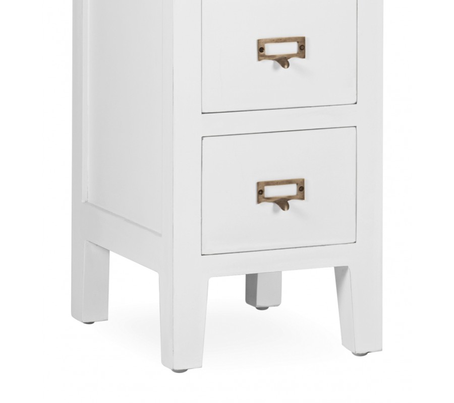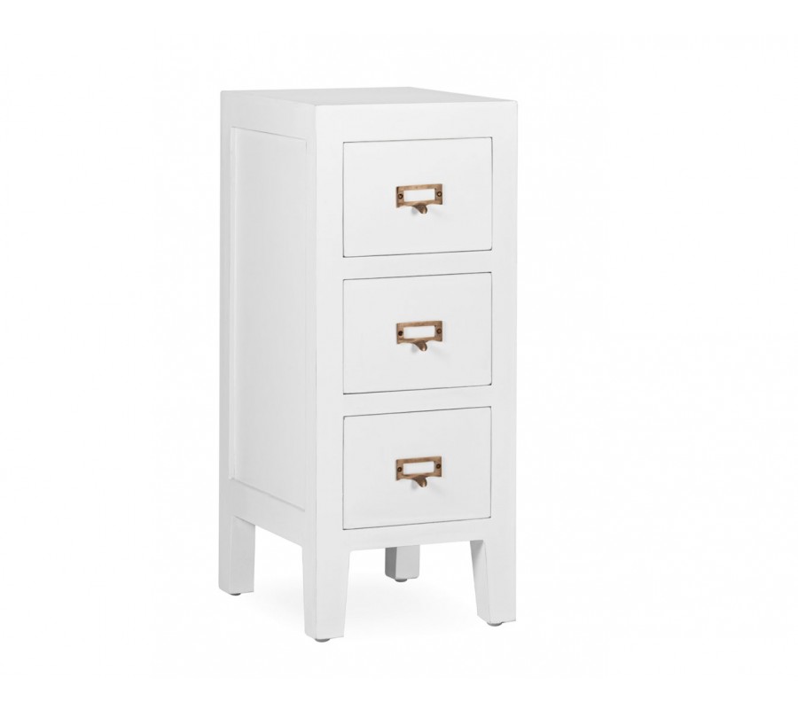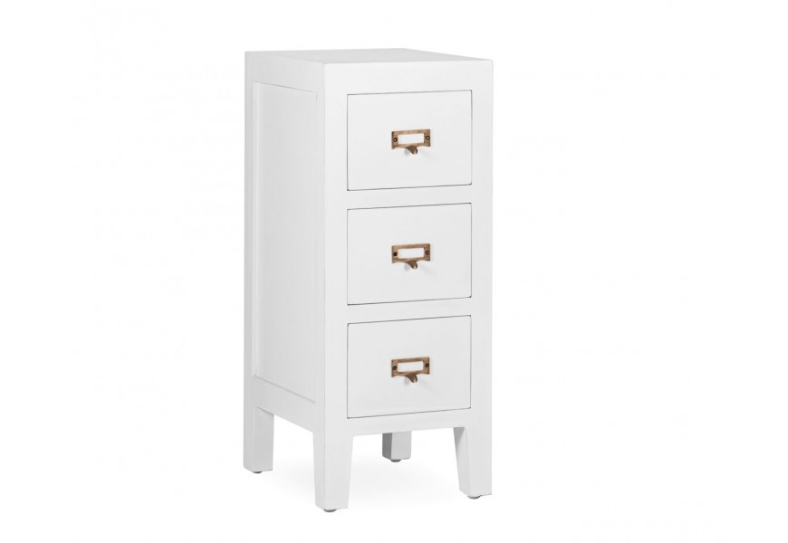 Koloniálny biely nočný stolík Blanc z masívneho dreva mindi s tromi zásuvkami 72cm