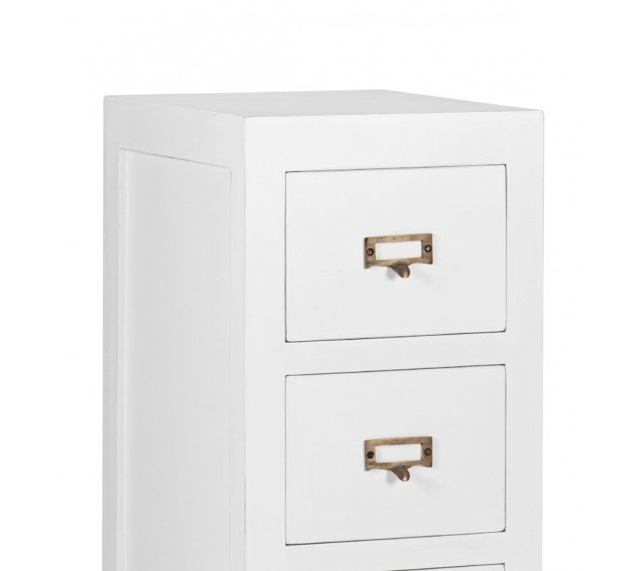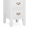 Jedinečný nočný stolík Blanc zaujme svojím elegantným dizajnom. Predstavuje kúsok prepájajúci prvky moderného a koloniálneho štýlu, a tak vhodne zapadne do rôznorodých priestorov a dá sa vynikajúco kombinovať so širokou škálou farieb i štýlov. Jeho konštrukcia sa nesie v príjemnej bielej farbe, ktorá vašu miestnosť rozžiari a presvetlí. Dopĺňa ju kontrastná hnedá povrchová doska a tiež akcenty v podobe bronzových kovových úchytov. Stolík ponúka úložný priestor v podobe troch praktických zásuviek, čo zaručene ocení každý, kto chce mať všetky potrebné drobnosti po ruke. Vyrobený je z masívneho dreva mindi, čo zabezpečuje jeho prvotriednu kvalitu a dlhú životnosť. Prírodný materiál navyše vo vašom interiéri pomôže vytvoriť tú pravú atmosféru a teplo domova. Nočný stolík Blanc krásne doplní klasicky ladenú bielu alebo hnedú masívnu posteľ. Na dotvorenie útulného pocitu domova odporúčame kombináciu s doplnkami v naturálnych farbách. Vhodné sú napríklad textílie ako hnedý alebo zelený koberček, závesy či dekoratívne vankúšiky. Odporúčame tiež bronzové dekorácie, ktoré budú krásne ladiť s kovovými prvkami stolíka.