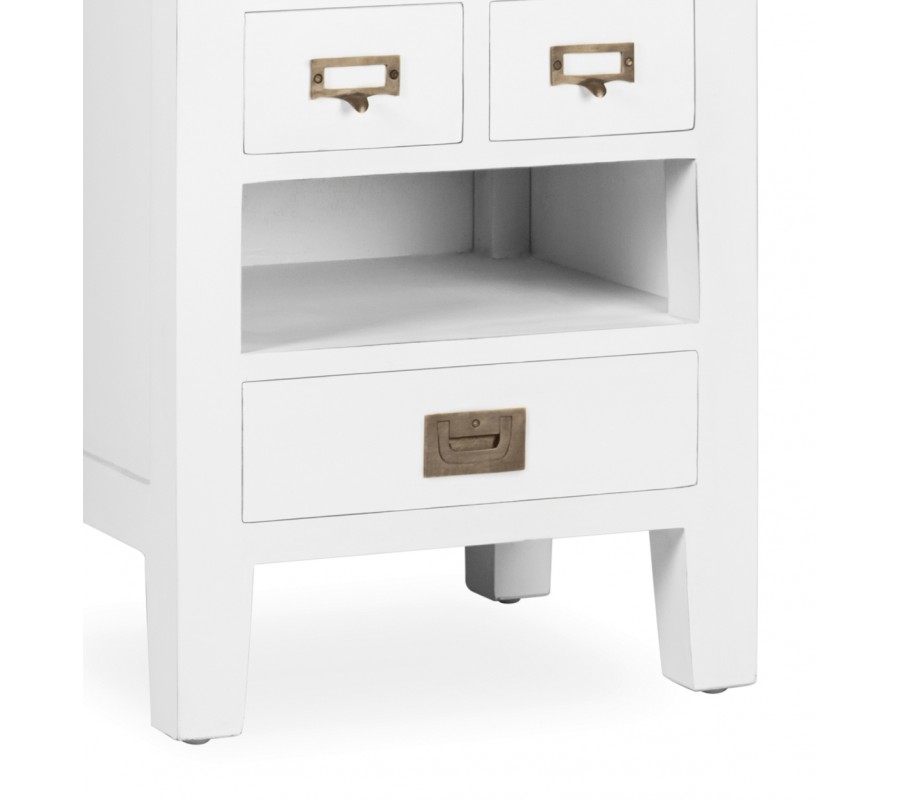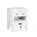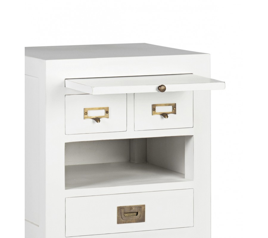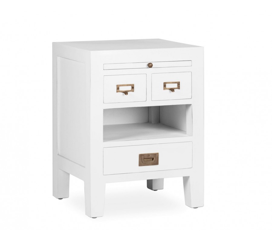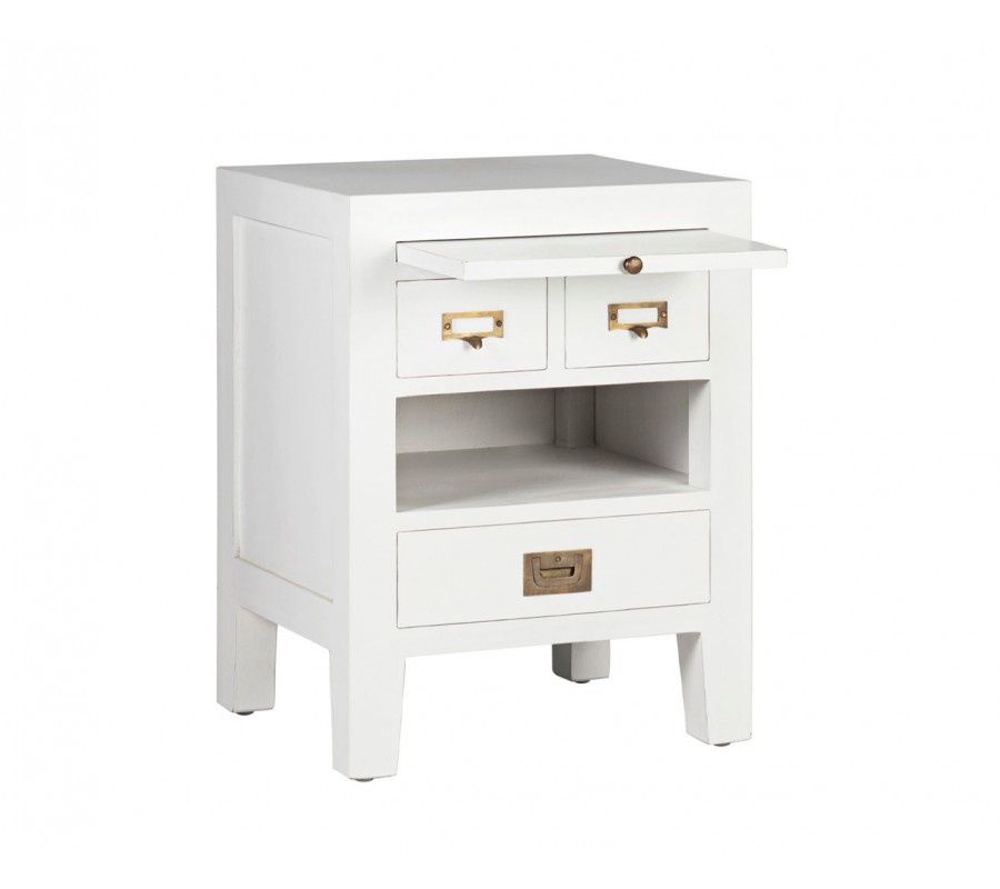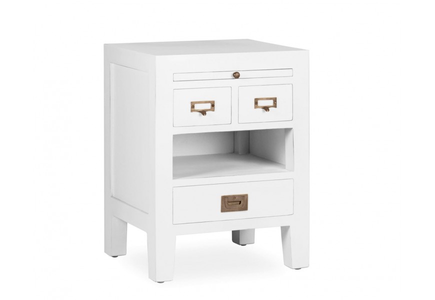 Koloniálny nočný stolík Blanc z masívu bielej farby s vysúvateľným doskou, so zásuvkami a poličkou 60cm