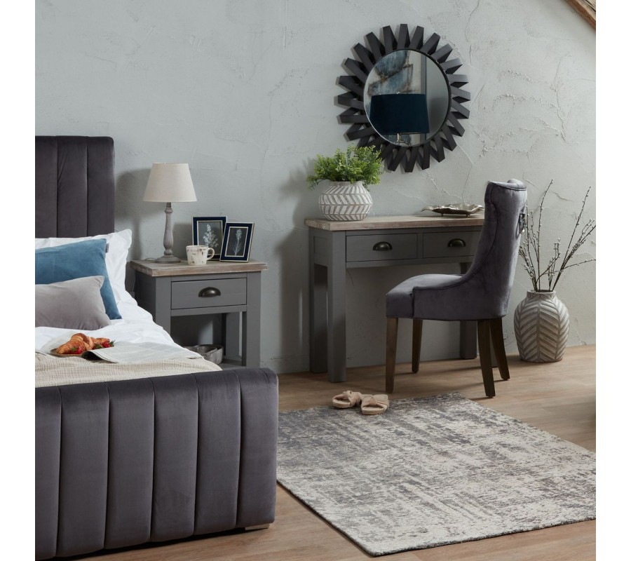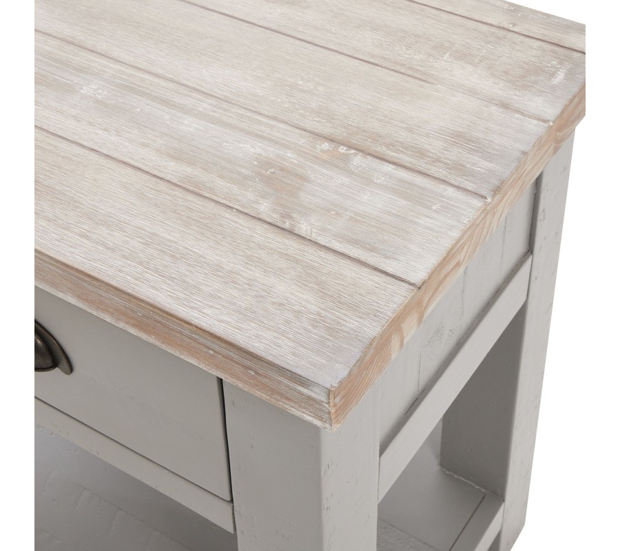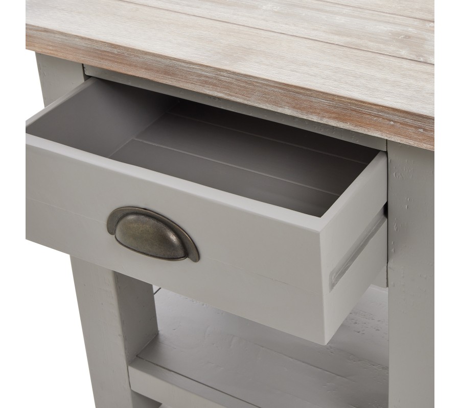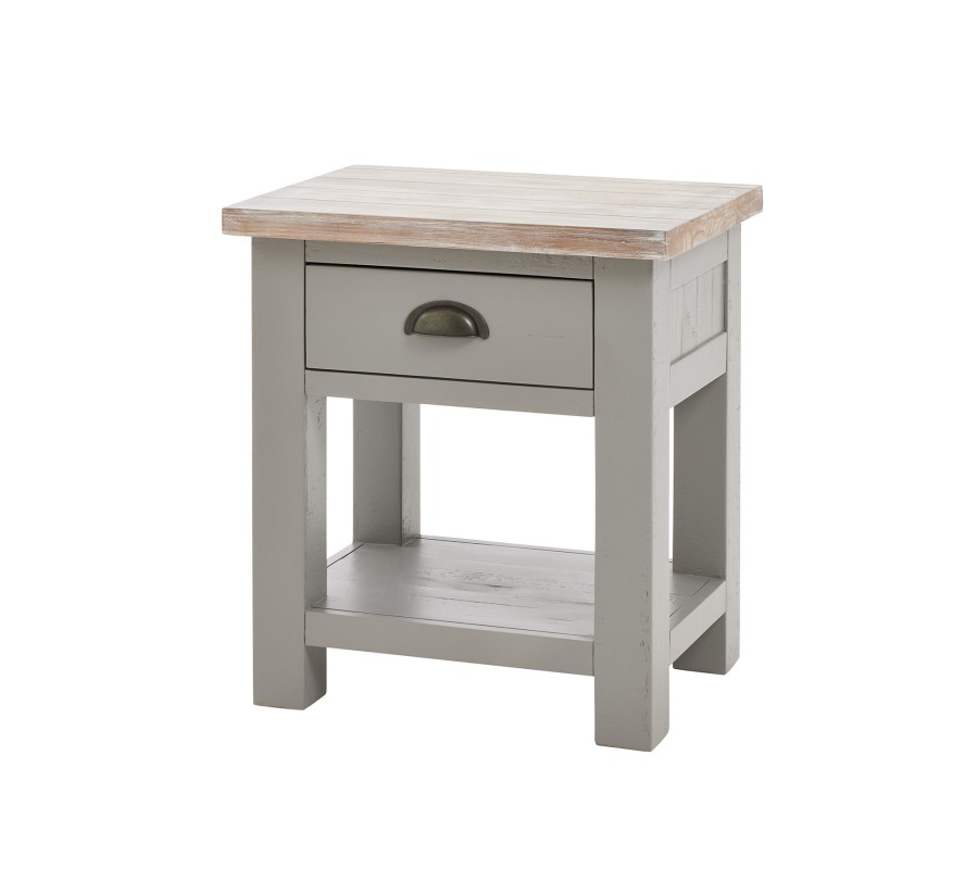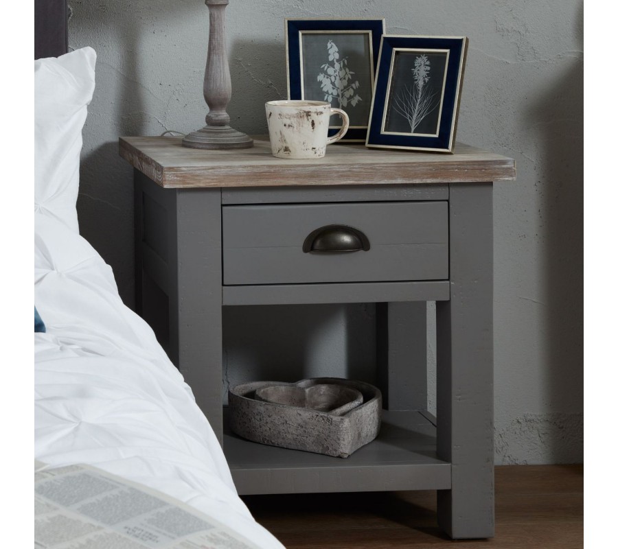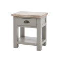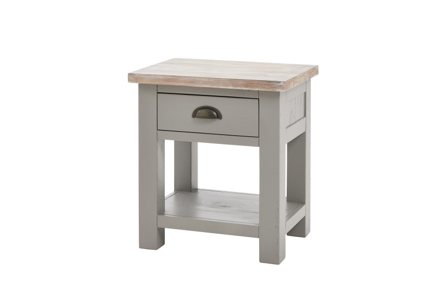 Masívny vidiecky nočný stolík Greytone v sivom prevedení s hnedou povrchovou doskou a zásuvkou 60cm