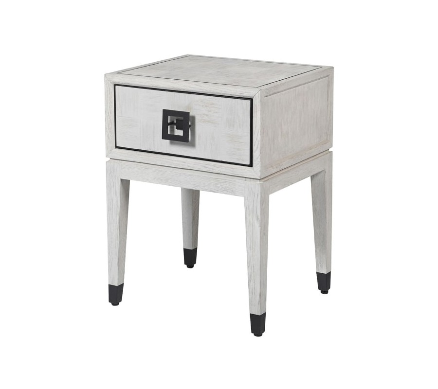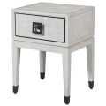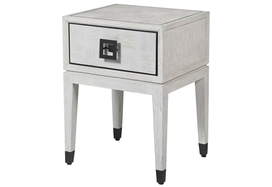 Moderný nočný stolík Quadria Blanca z masívneho dreva sivobielej farby so zásuvkou a nožičkami 62cm