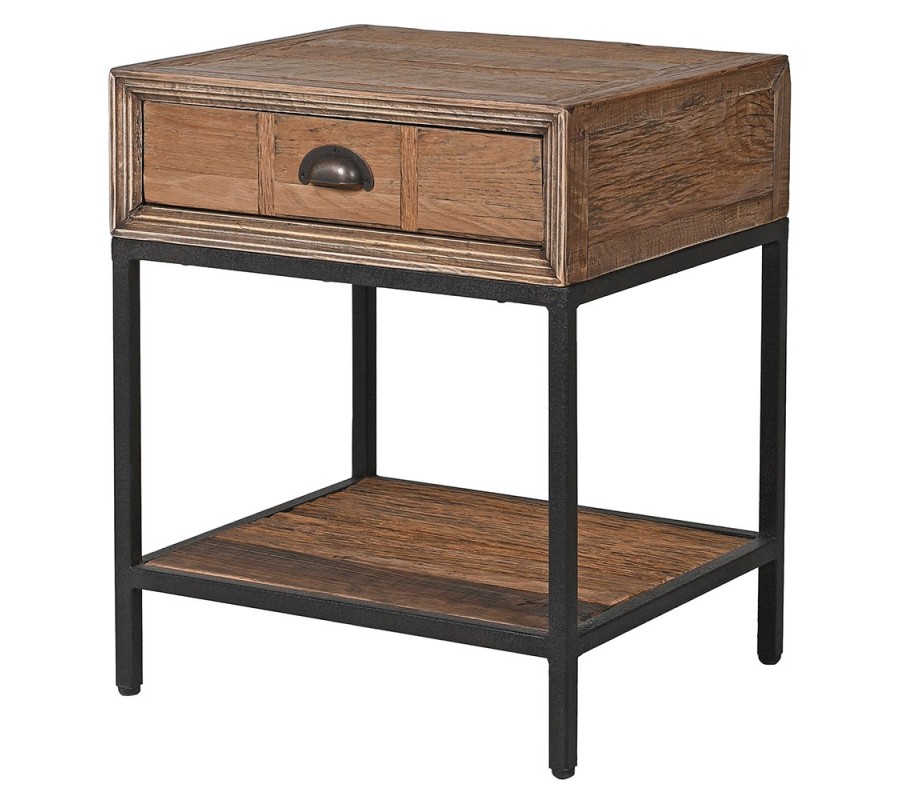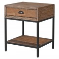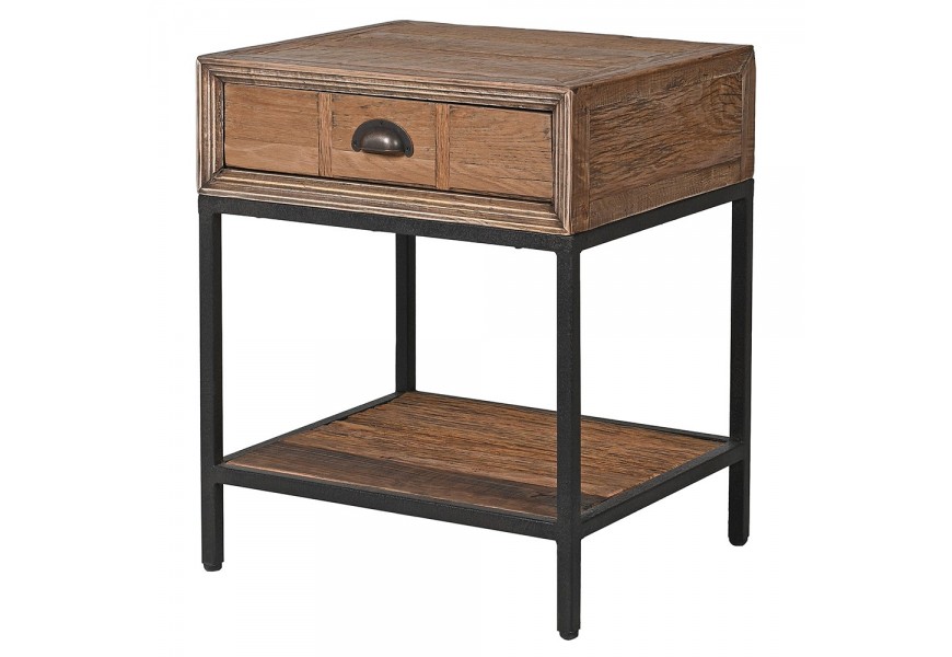 Dizajnový nočný stolík z kolekcie Ondine vo vintage štýle Vám ponúka drsný historický vzhľad masívneho dreva, ktorý krásne doplní spálne, či obývačky a dodá nádych industriálneho štýlu. Spomenuté masívne drevo stolíka Ondine v dubovom vyhotovení ponúkne jedinečný vzhľad vďaka svojmu povrchu s opotrebovaným dizajnom. Industriálny vzhľad je vytvorený vďaka železnej konštrukcie so štyrmi nožičkami, ktorá taktiež chráni otvorenú spodnú policu. Praktická stránka stolíka Ondine je doplnená zásuvkou s vintage kovovou rukoväťou. Vďaka svojmu dizajnovému a praktickému prevedeniu môžete využiť stolík Ondine ako nočný stolík do Vašej spálne, či ako príručný stolík do obývačky, kde vynikne čierna konštrukcia s kovovým nábytkom a doplnkami, pričom masívne svetlo hnedé drevo môžete doplniť masívnym dubovým nábytkom z kolekcie Ondine.