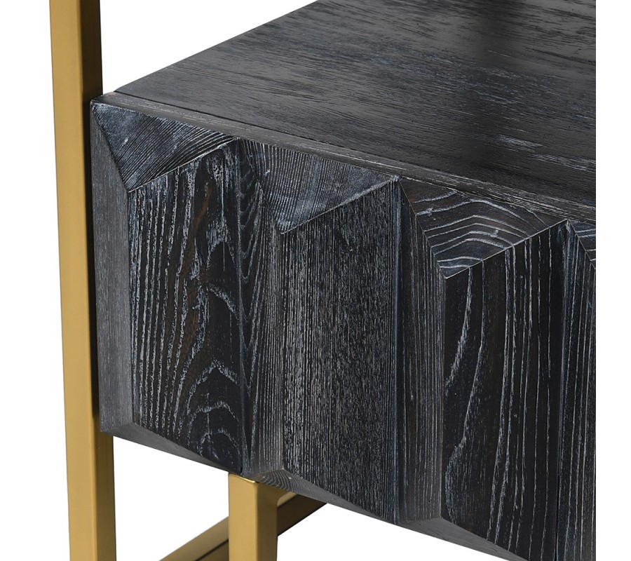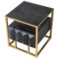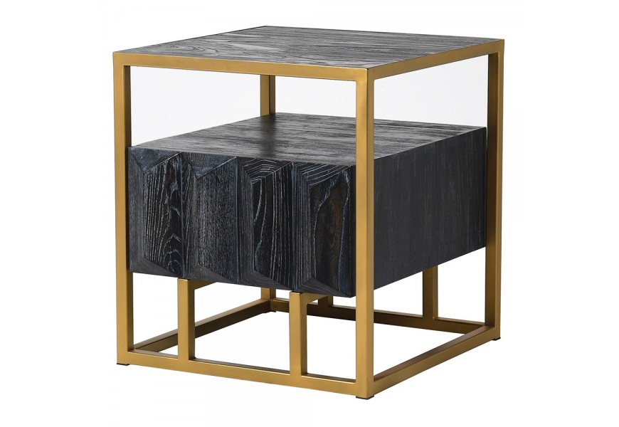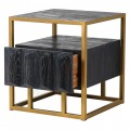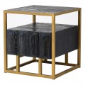 Art-deco čierny dizajnový nočný stolík Loop z masívu s kovovou konštrukciou v zlatej farbe 60cm