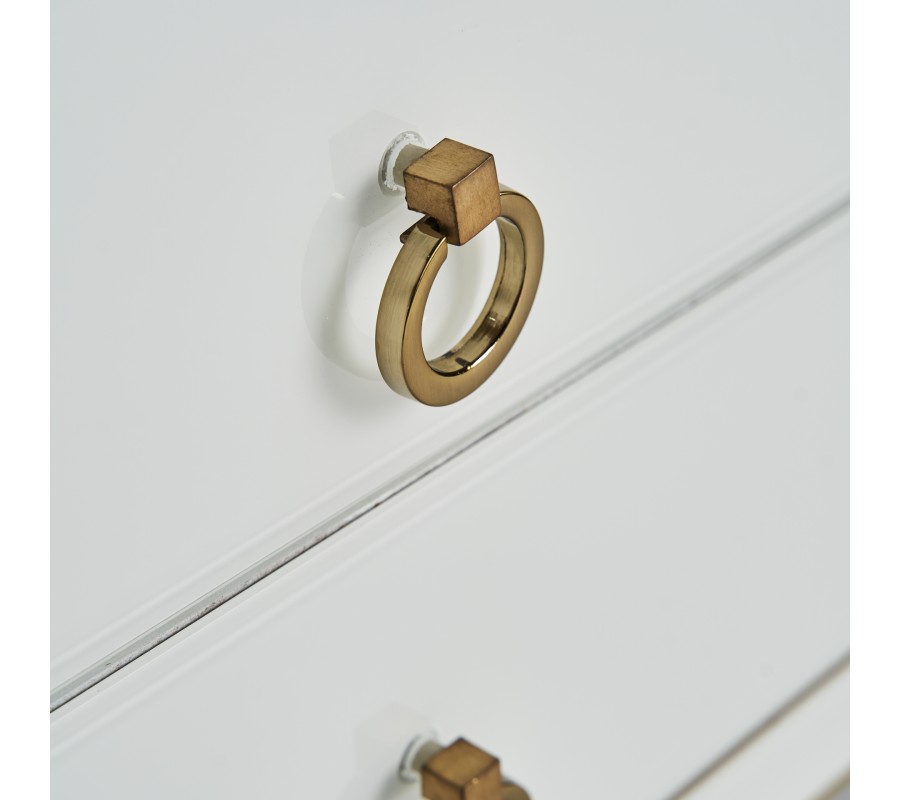 Pre vytvorenie luxusného vzhľadu vo Vašej spálni tu je pre Vás exkluzívny nočný stolík Bynum v modernom vyhotovení, ktorý kombinuje bielu farbu so zlatou a jeho jedinečné tvary umocnia unikátny vzhľad tohto produktu. Luxusný nočný stolík Bynum s nádychom štýlu art-deco disponuje vyhotovením zo skla v matnej bielej farbe, ktoré je doplnené nadčasovými prvkami v podobe okrúhlych kovových rukovätí v zlatej farbe a nevšednej podstavy. Oceľové nožičky stolíka Bynum v zlatej farbe sa nesú v zaoblenom tvare, ktorých stabilitu zaisťuje obdĺžniková podstava. Dizajnová stránka nočného stolíka je obohatená o dve praktické zásuvky, pre šikovné odkladanie rôznych drobností. Kombinácia bielej a zlatej farby vytvorí unikátny prepychový vzhľad interiéru, čo je dôvodom prečo odporúčame kombinovať nočný stolík Bynum najmä s bielym nábytkom so zlatými prvkami a doplnkami, a taktiež s krémovými a šedými farbami posteľe.