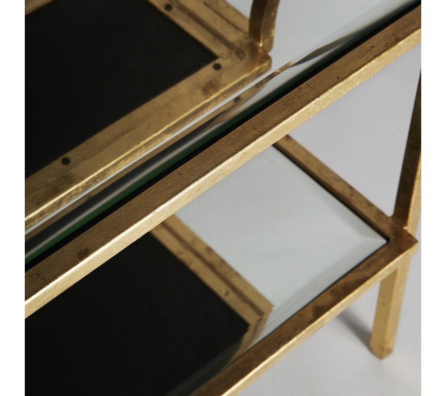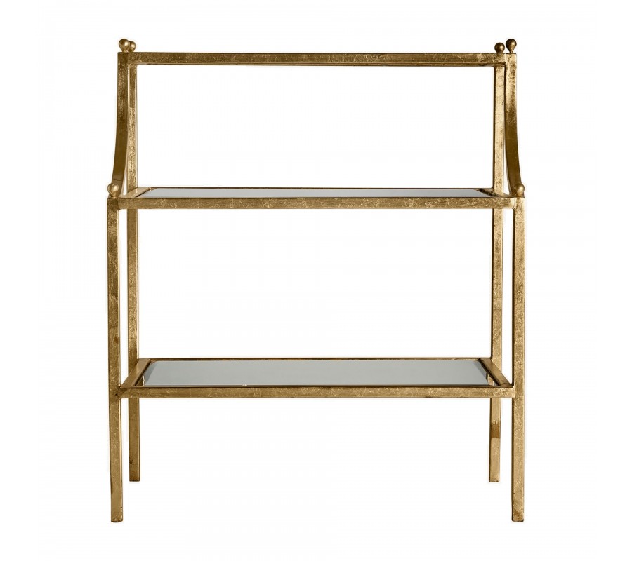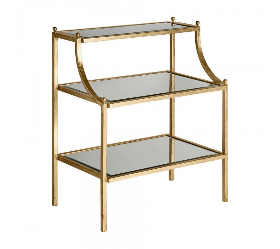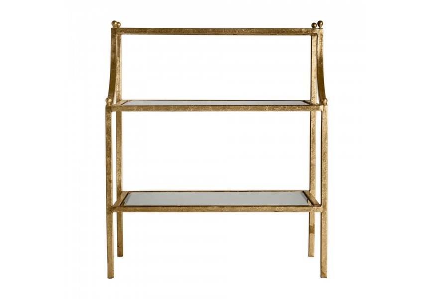 Luxusný art-deco nočný stolík Amuny s kovovou konštrukciou v zlatej farbe s otovrenými poličkami 84cm