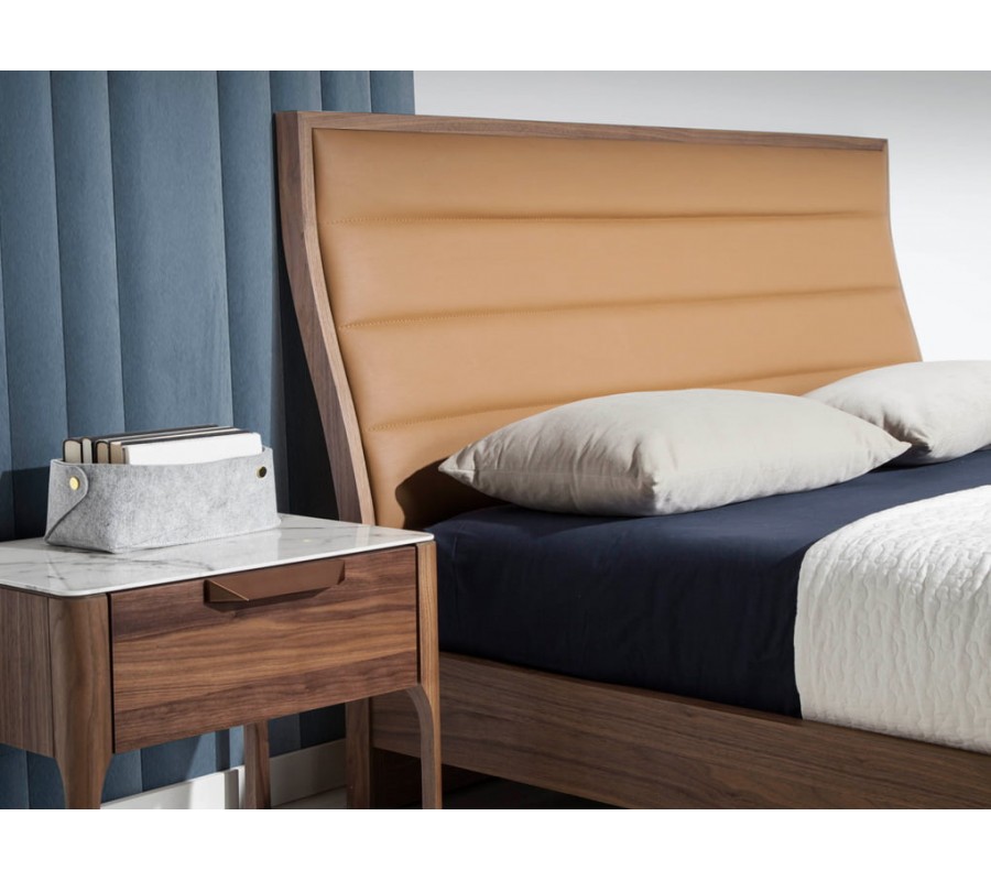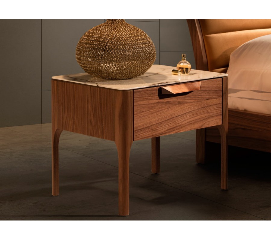 Hľadáte vo svojej spálni kombináciu moderného vzhľadu, obohateného o taliansky štýl s prírodným nádychom? Máme pre Vás nočný stolík z kolekcie Forma Moderna! Moderný nočný stolík Forma Moderna sa pýši nadčasovým dizajnom, ktorý je dosiahnutý vďaka štýlového vyhotoveniu z dreva. Drevo stolíka v hnedej farbe je obohatené o kvalitné orechové dyhovanie, ktoré vytvorí jedinečný vzhľad s prírodným nádychom, a taktiež zaručí trvácnosť produktu.
