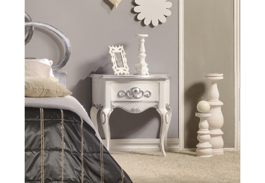 Luxusný barokový nočný stolík Alegro bielej farby so zásuvkou a ornamentálnym zdobením 62cm