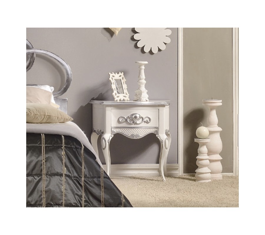 Luxusný nočný stolík Alegro je unikátnym doplnkom do barokovo či klasicky ladených spální. Je vyrobený z kvalitného masívneho dreva, ktoré dopĺňa nádherné precízne vyrezávanie dotvárajúce jedinečný charakteristický vzhľad. Hladký povrch v kombinácii s vyrezávaným zdobením vytvára klasický vzhľad s jemným barokovým nádychom, ktorý umocňujú ozdobné strieborné aplikácie na prednej časti stolíka. Na výber ponúkame niekoľko možností povrchovej úpravy, ktoré nájdete v priloženom vzorkovníku. To umožňuje vynikajúce kombinovanie tohto kúsku s ďalším zariadením vašej spálne. Okrem elegantného a bohato zdobeného dizajnu nočný stolík Alegro ponoúka aj úložný priestor v podobe praktickej zásuvky. Zásuvka je doplnená okrúhlym úchytom a detailným strieborným ozdobným vzorom. Krásne zaoblené nožičky i vykrojená spodná hrana dávajú stolíku nezameniteľný nádych klasického štýlu, ktorý pozdvihne váš interiér a dodá mu luxusný vzhľad. Nočný stolík Alegro vytvorí dokonalú kombináciu s rovnomennou manželskou posteľou, toaletným stolíkom či taburetkou. Vhodné sú tiež strieborné a sklenené dekorácie a čalúnené zamatové alebo hodvábne povrchy.