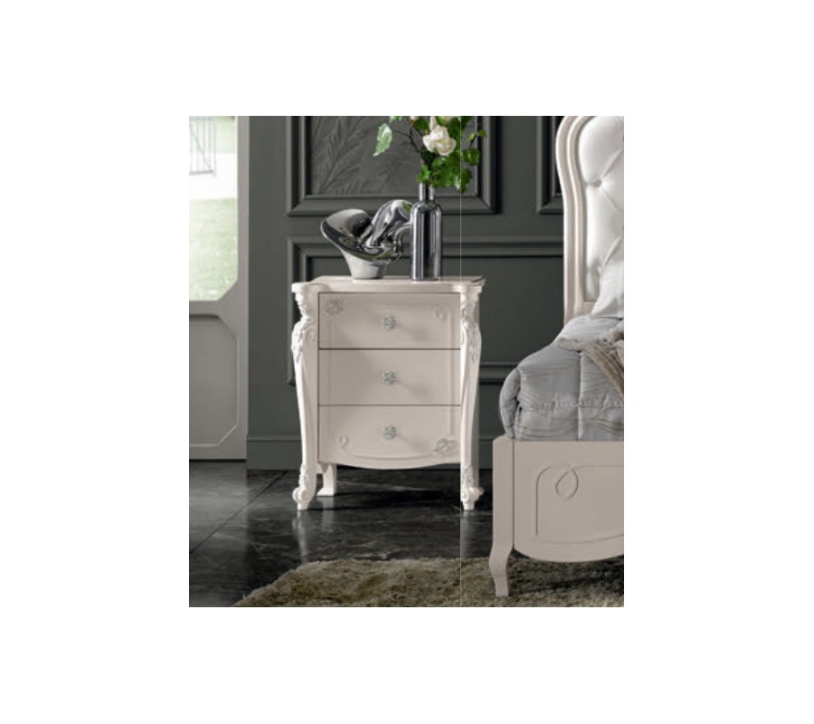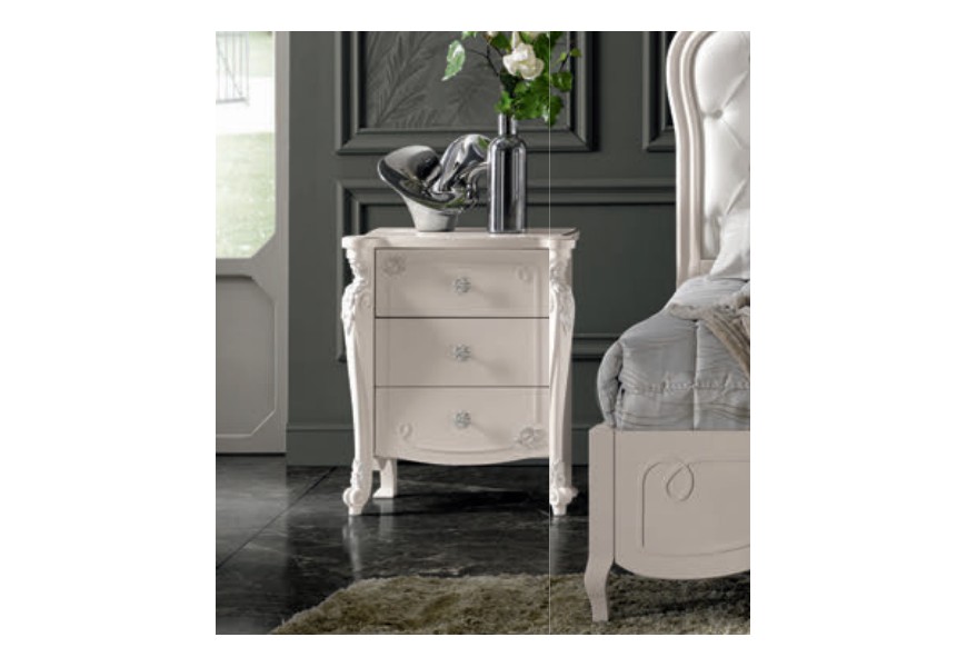 Barokový nočný stolík Lussitano v masívnom prevedení s tromi zásuvkami s úchytmi s vyrezávaním 69cm