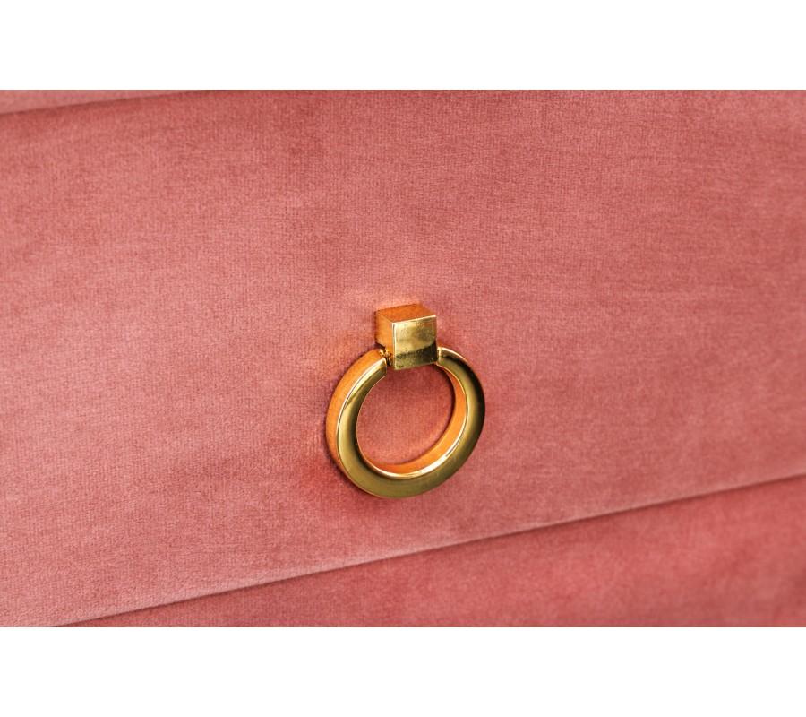 Štýlový nočný stolík Bentley predstavuje elegantný a praktický kúsok vhodný na doplnenie každej art deco ladenej spálne. Vo svojom dizajne prepája jednoduché geometrické tvary a unikátny glamour nádych, čím vzniká skutočne esteticky príťažlivý bytový doplnok s praktickým využitím. Stolík Bentley disponuje elegantným zamatovým poťahom v lososovoružovej farbe, ktorý dopĺňajú zlaté nožičky z kovu. Vzniká tak dizajnový glamour vzhľad, ktorým vkusne doplníte najmä art deco a moderne ladené spálne. Stolík klasického obdĺžnikového tvaru tiež disponuje dvomi praktickými zásuvkami na uschovanie predmetov, ktoré chcete mať vždy po ruke. Zásuvky zdobia štýlové kruhové rukoväte z kovu Unikátny vzhľad nočného stolíka Bentley vkusne doplní súkromné spálne, ale i hosťovské izby či izby v luxusných hoteloch a ubytovniach. Dokonalú kombináciu vytvorí s rovnomennou manželskou posteľou v rovnakom ružovom prevedení! Na umocnenie art deco štýlu tiež odporúčame kombináciu s nábytkom zo skla či kovu a dekoráciami so zrkadlovým efektom.