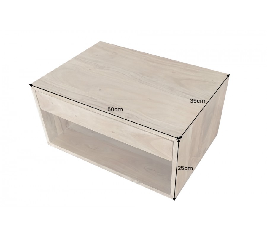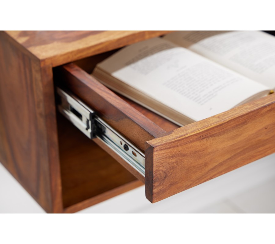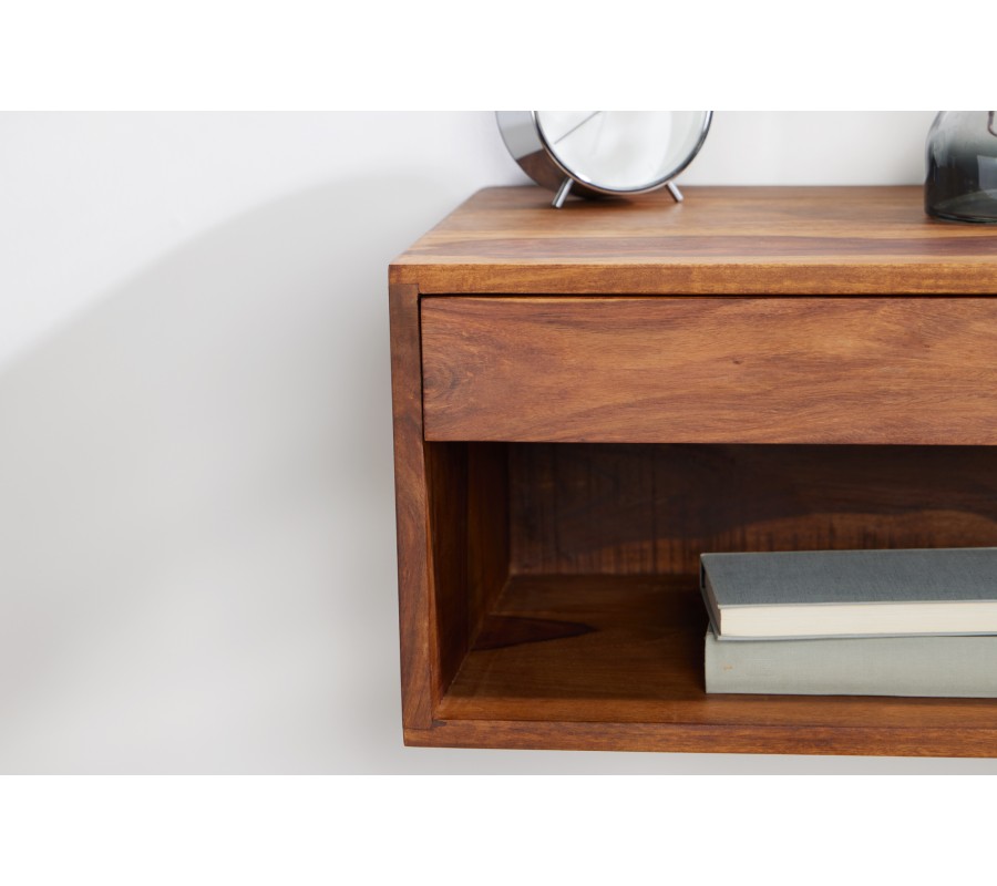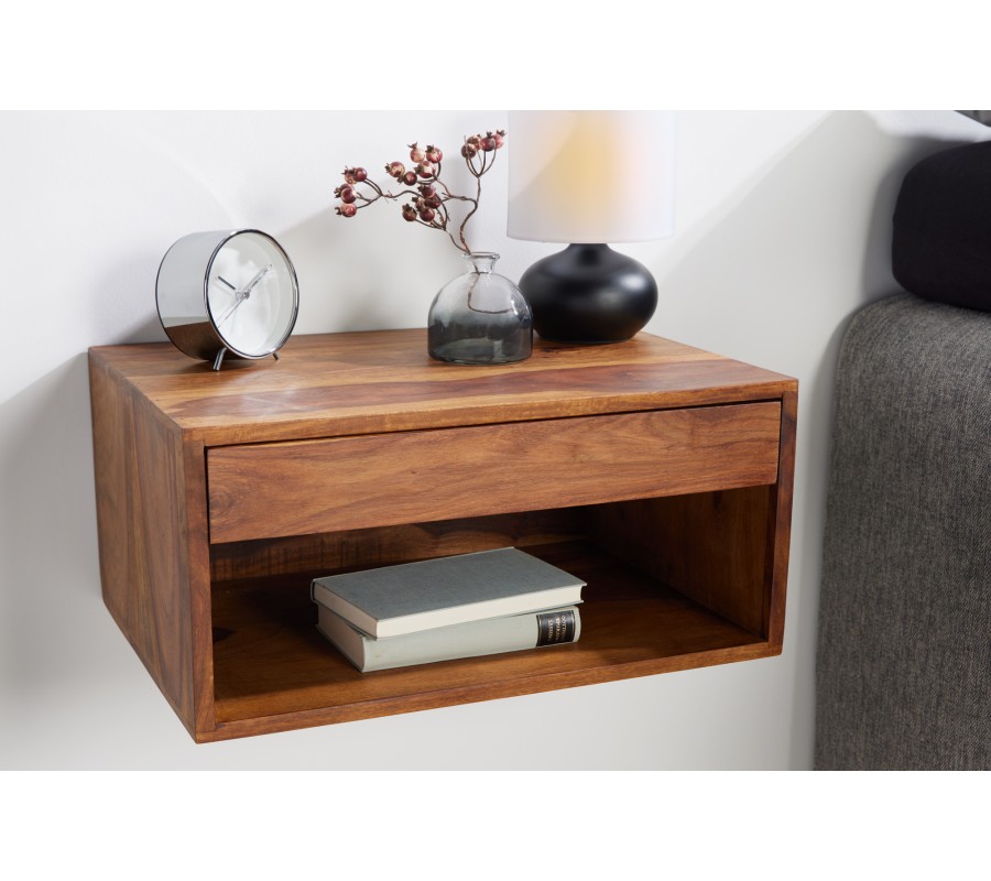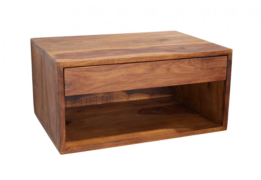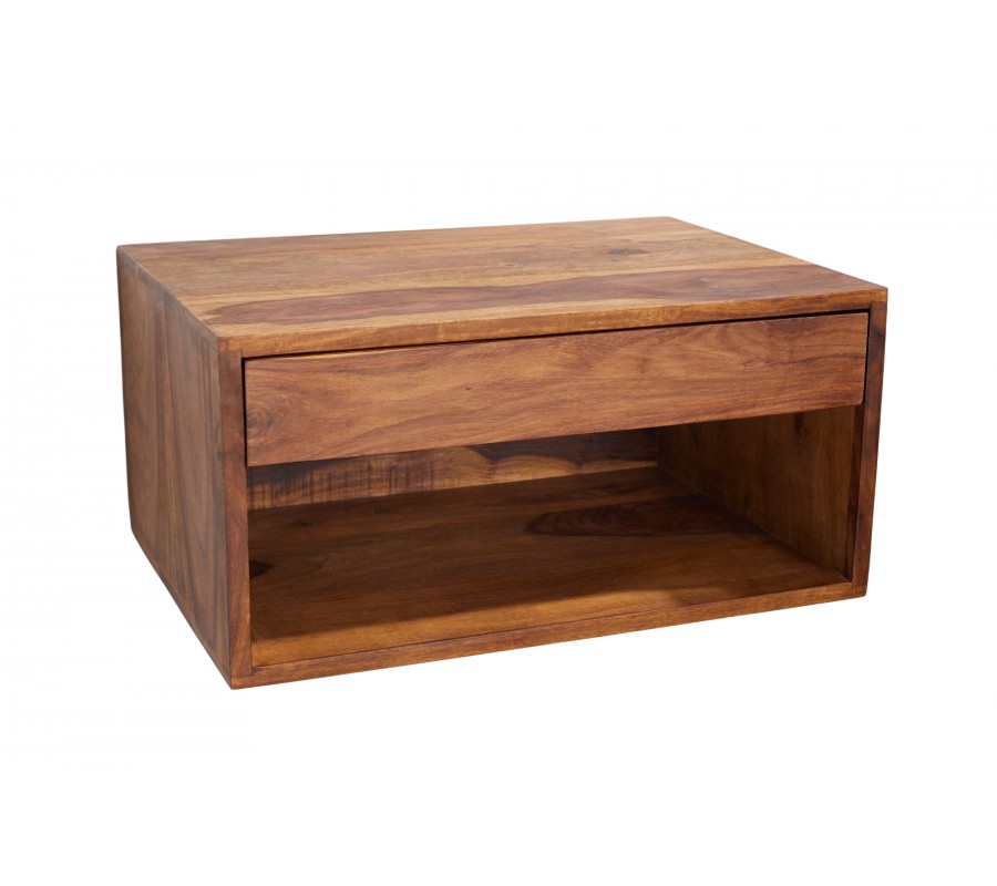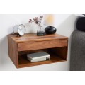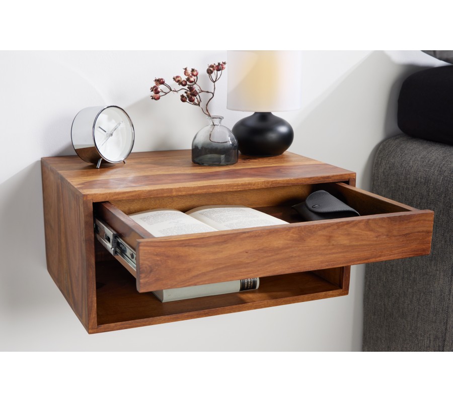 Vidiecky nástenný nočný stolík Arborio s policou a zásuvkou zo sheeshamového dreva 50 cm