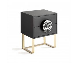 Luxusný art deco nočný stolík Tesoreria v čiernej farbe s dvomi zásuvkami s úchytkou z kosťovou inkrustáciou 50 cm