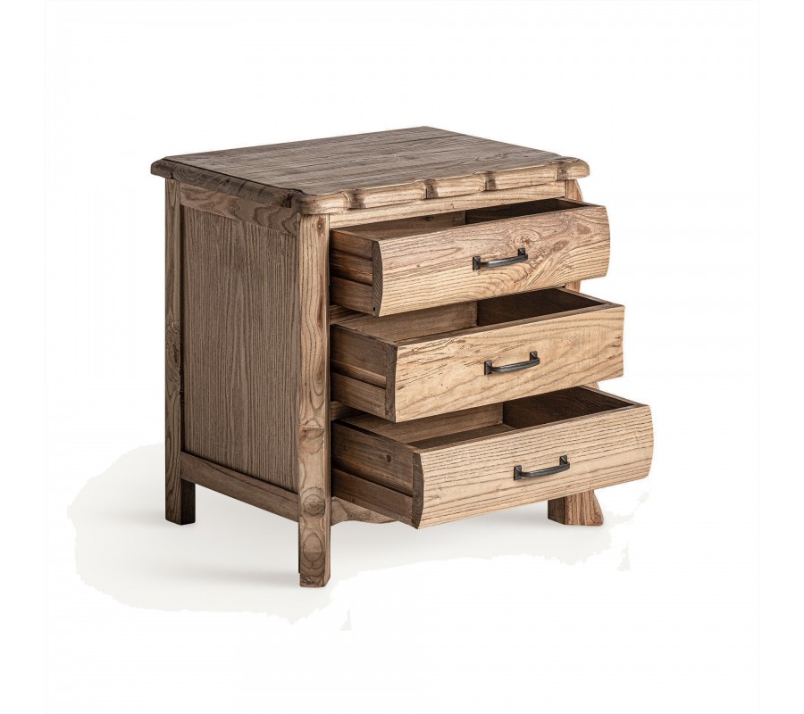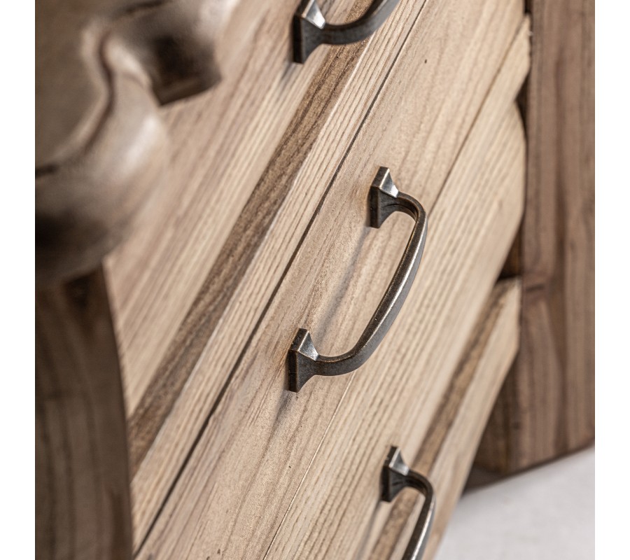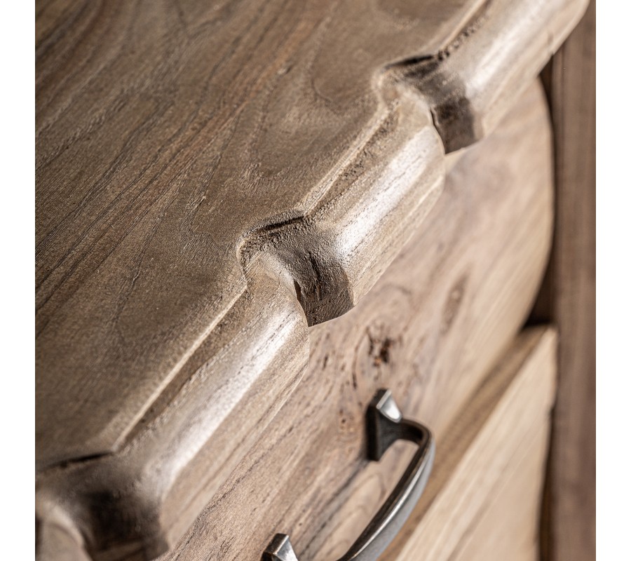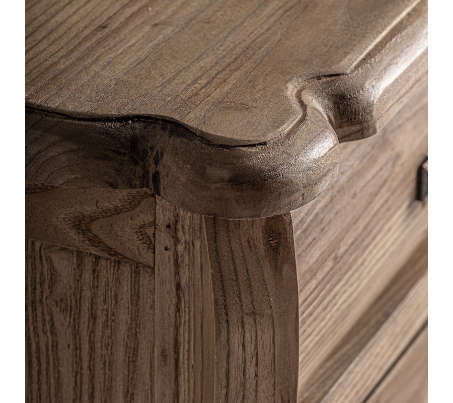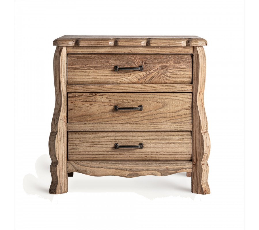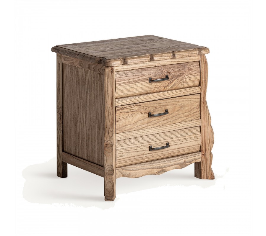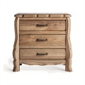 Nočný stolík Valletta vnesie do vašej spálne rustikálny luxus. Na prvý pohľad vás očarí jeho bohaté vyrezávané zdobenie inšpirované barokovým nábytkom a prekvapivo veľký úložný priestor v troch zásuvkách. Je vyrobený z masívneho bukového dreva, ktoré je veľmi pevné a nábytok z neho je charakteristický svojou trvanlivosťou a odolnosťou. Hrany na prednej strane stolíka zdobí dekoratívne vyrezávanie s motívom kriviek a hlbokých zárezov. Vzniká tak zaujímavá fúzia historickej barokovej inšpirácie s moderným lineárnym dizajnom. S týmto tvarom korešpondujú aj kovové úchytky, ktoré sú mierne zaoblené. Drevo má svetlú farbu s výraznou štruktúrou letokruhov, ktorá dodáva stolíku prírodný charakter. Ten v kombinácii s ozdobným vyrezávaním pôsobí útulným vidieckym dojmom, ktorý môžete posilniť pridaním vzorovaných textílií či vankúšov. Stolíkom môžete doplniť posteľ z masívneho dreva. Hodí sa aj do spální zariadených v neutrálnych svetlých farbách, kde bude vďaka svojmu zdobeniu pôsobiť aj ako dekoratívny prvok. V kombinácii so starožitným nočným svietidlom zase vynikne rustikálny charakter stolíka.