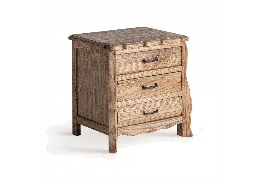 Luxusný rustikálny nočný stolík Valletta s dekoratívnym vyrezávaním v barokovom štýle v hnedej farbe s kresbou letokruhov 64 cm