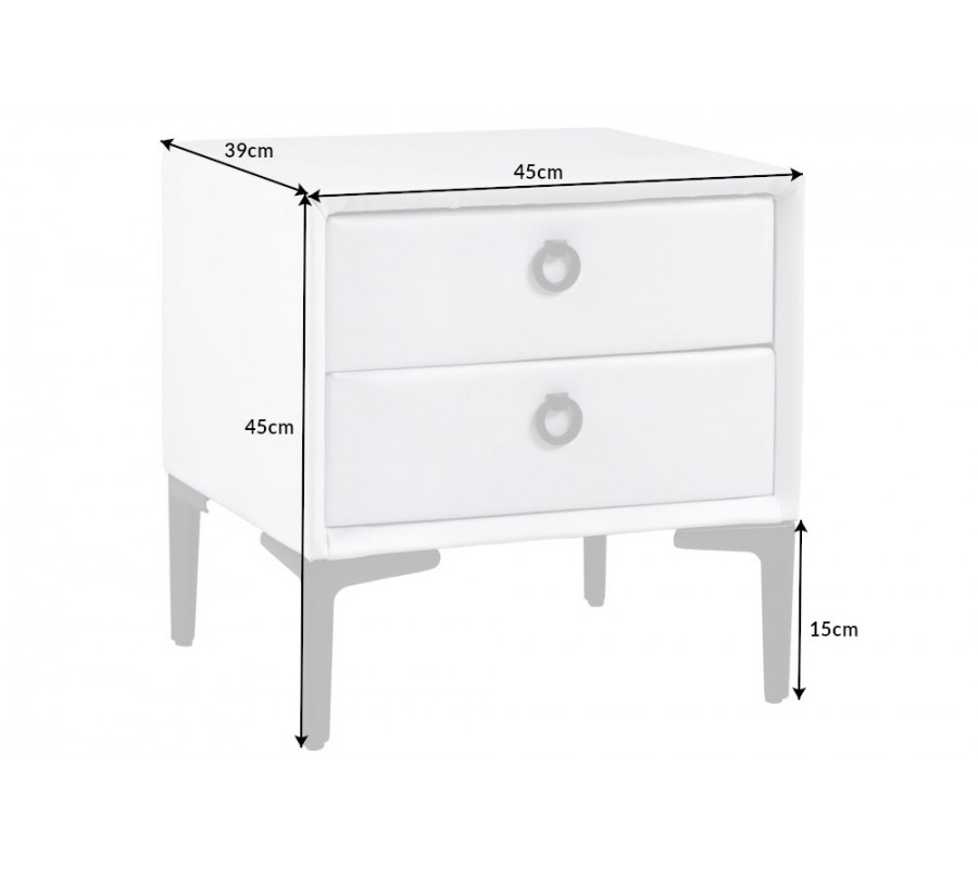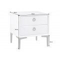 Moderný čalúnený biely nočný stolík Everson so zamatovým poťahom a dvomi zásuvkami 45 cm