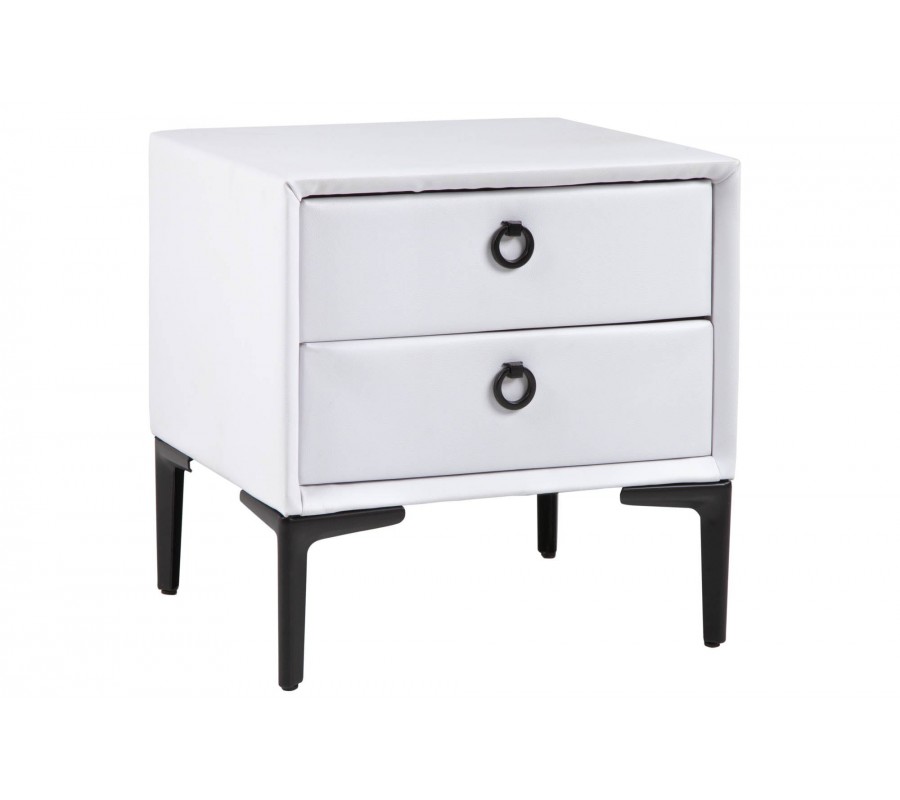 Nočný stolík Everson vás upúta svojím originálnym čalúneným dizajnom. Nesmrteľná kombinácia bielej a čiernej v kombinácii s elegantným zamatovým materiálom dodá vašej spálni sofistikovaný a nadčasový vzhľad.