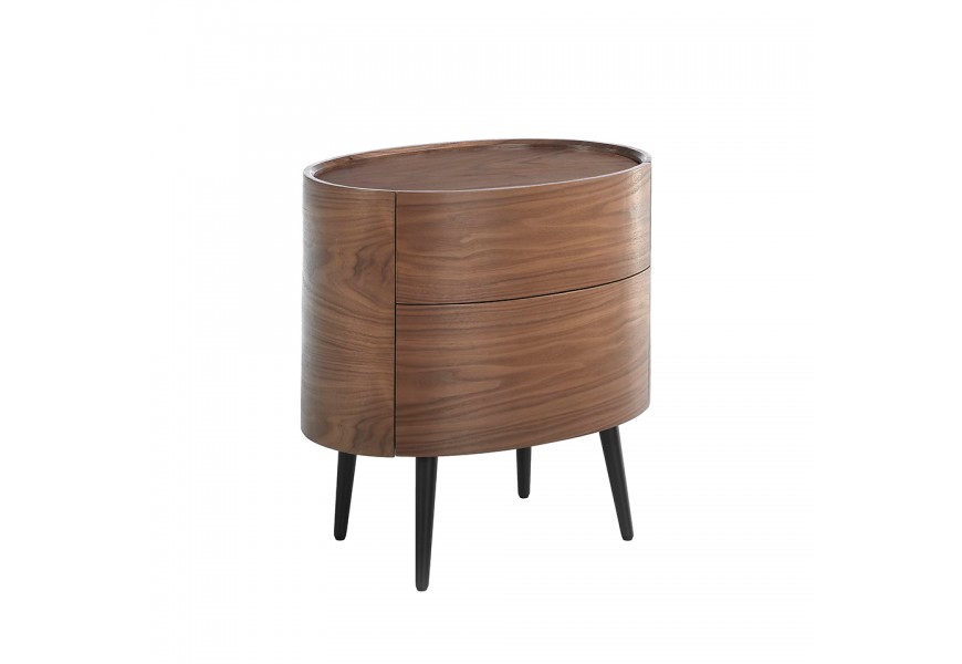 Luxusný moderný oválny nočný stolík Vita Naturale s dvomi zásuvkami v orechovej hnedej farbe 60 cm