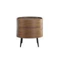 Nočný stolík je vyrobený z kvalitného dyhovaného orechového dreva. Má príjemnú naturálnu svetlú hnedú farbu s tmavšou kresbou letokruhov, ktorá je štylizovaná tak, aby plynula horizontálne po obvode nábytku. Vďaka tomuto subtílnemu prírodnému vzoru má tak stolík elegantný a uhladený vzhľad.