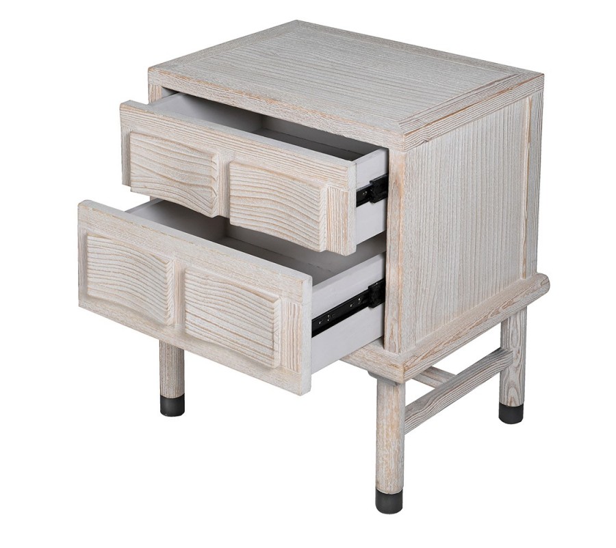 Luxusný vidiecky nočný stolík Sandy vynikne v akomkoľvek vidiecky ladenom priestore. Stolík má jemne spracovaný dizajn, ktorý poskytuje dostatočný priestor na dekoratívne predmety alebo osobné veci. Masívne drevo, z ktorého je celý stolík vyrobený, má pieskovaný povrch, čo zvýrazňuje jeho prirodzenú textúru a štruktúru. Povrchová úprava dreva vytvára príjemný prírodný odtieň svetlohnedej, ktorý podčiarkuje elegantný vzhľad stolíka. Predná strana stolíka má detailný tabuľový dizajn, s vyvýšenými okrajmi a jemne zníženou stredovou časťou, čo pridáva vizuálny prvok kazetového vzhľadu. Zásuvky poskytujú praktický priestor pre úložné potreby a sú hladko integrované do celkového dizajnu. Stolík stojí na rovných, valcovitých nohách s tmavou spodnou časťou, kde sa nohy spájajú do pevnej H-kovej základne, čím sa zabezpečuje stabilita a odolnosť. Nočný stolík Sandy je ideálny doplnok do spálne zariadenej vo vidieckom štýle, no vynikne aj v iných priestoroch, kde sa preferujú prírodné a neutrálny odtiene, ako sú hnedá, béžová alebo sivá, ktoré dopĺňajú jeho vidiecky charakter.