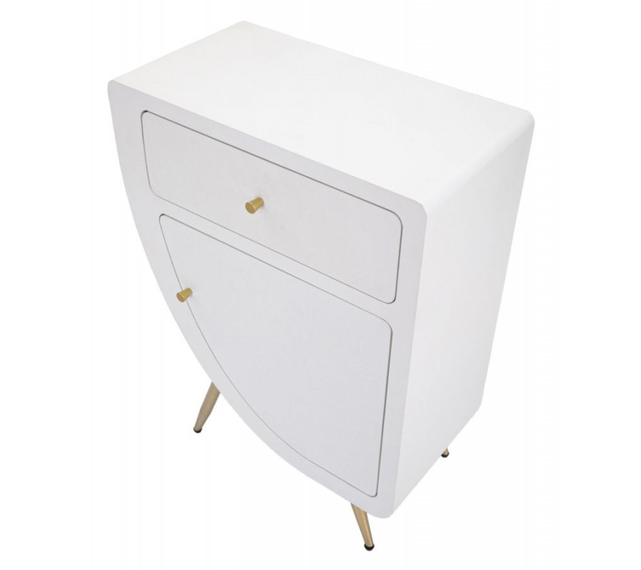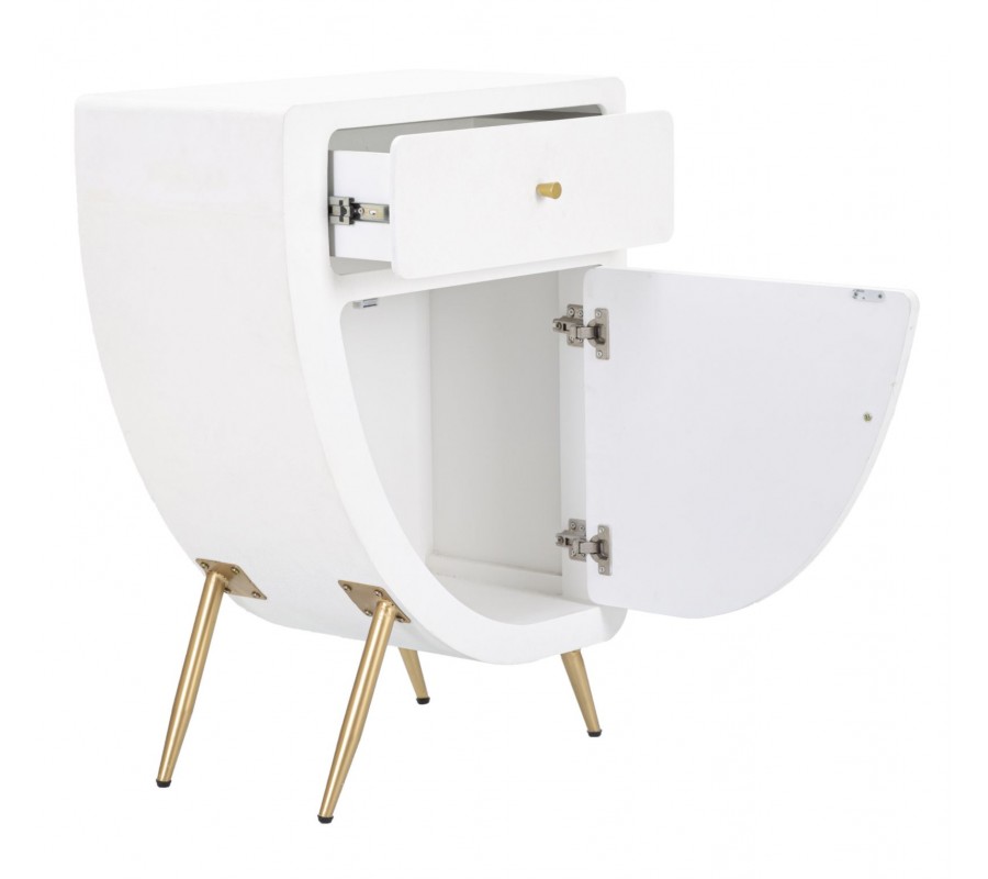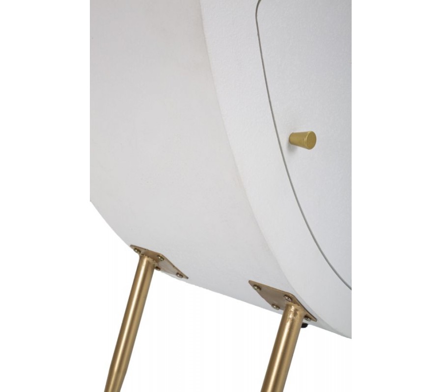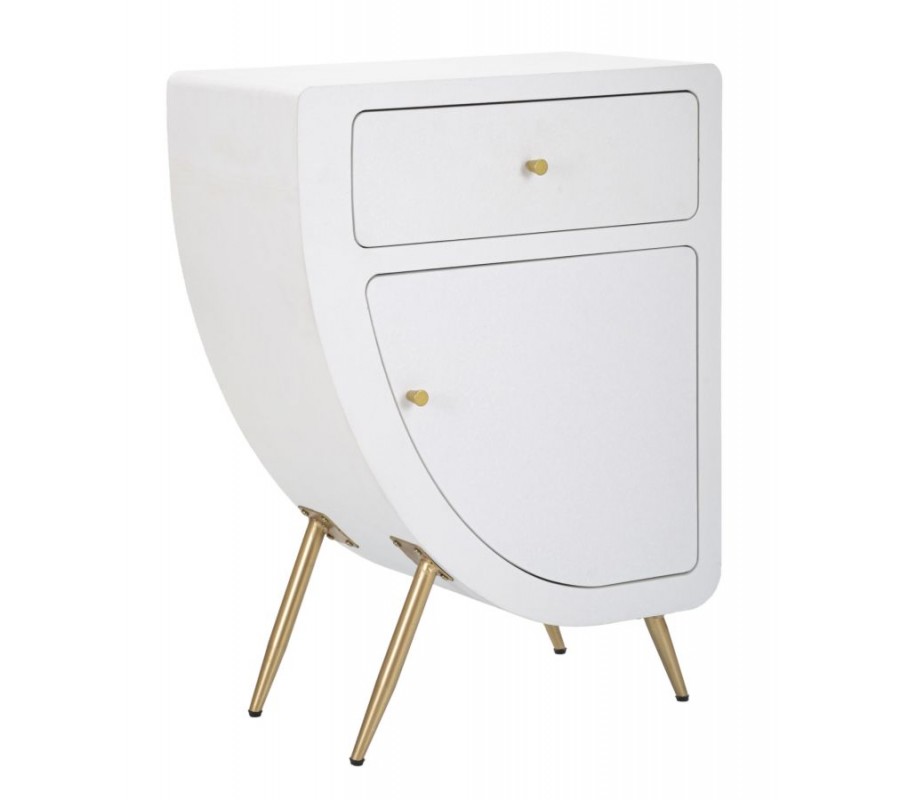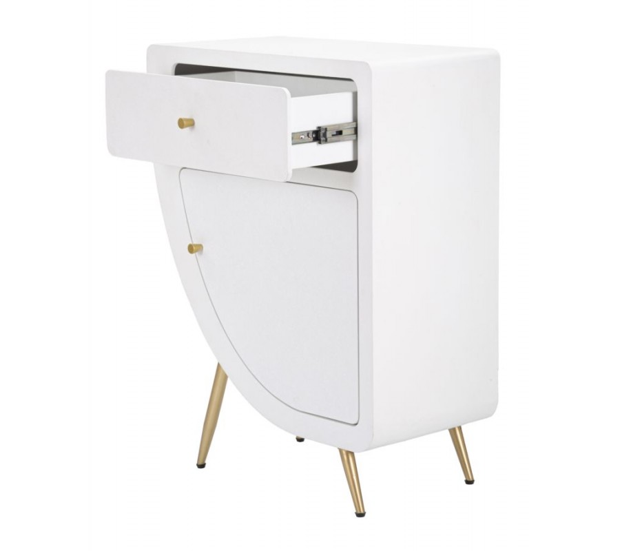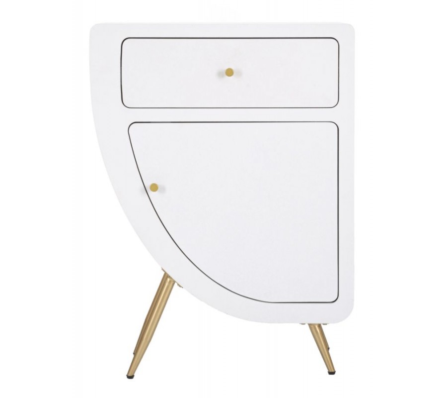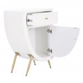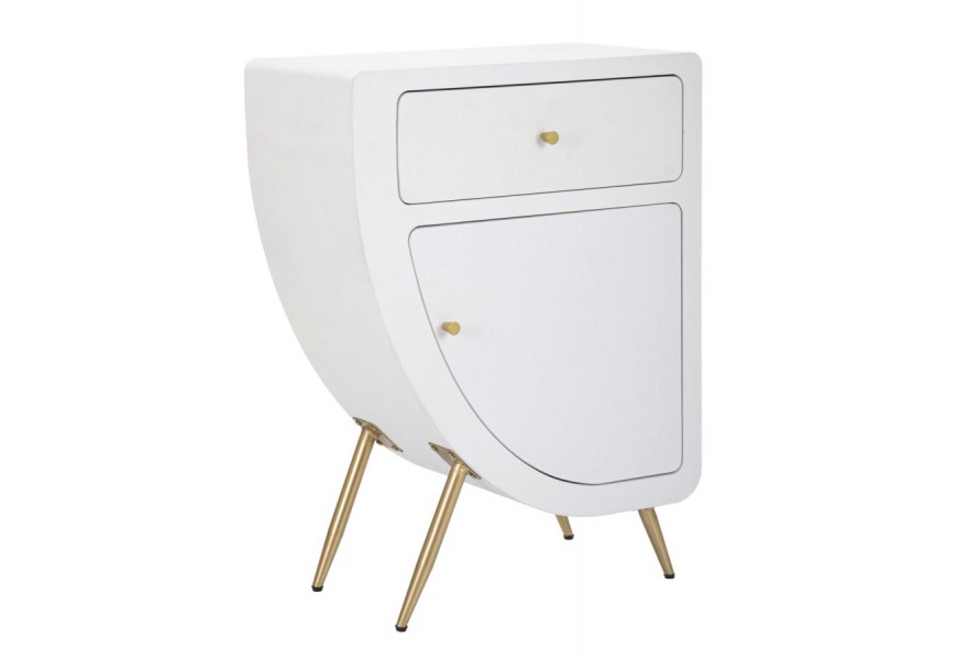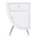Art deco atypický biely nočný stolík Anila s jednou zásuvkou a jednými dvierkami so zlatými kovovými detailmi 79 cm