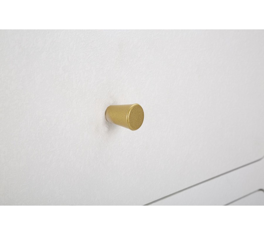 Nožičky sú štíhle a mierne naklonené, vyrobené z kovu vo farbe zlata, čím stolík získava luxusný vzhľad. Zlaté úchytky na zásuvke a dvierkach dokonale ladia s nožičkami a dodávajú stolíku glamour charakter. Kombinácia art deco a glamour štýlu mu dáva sofistikovaný a nadčasový dizajn.