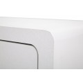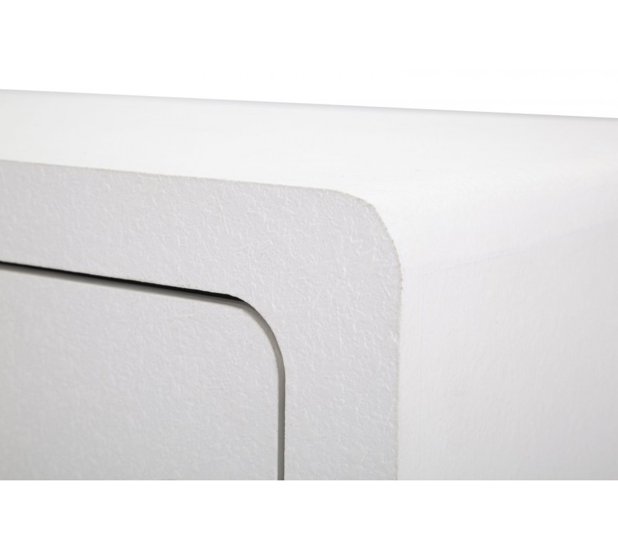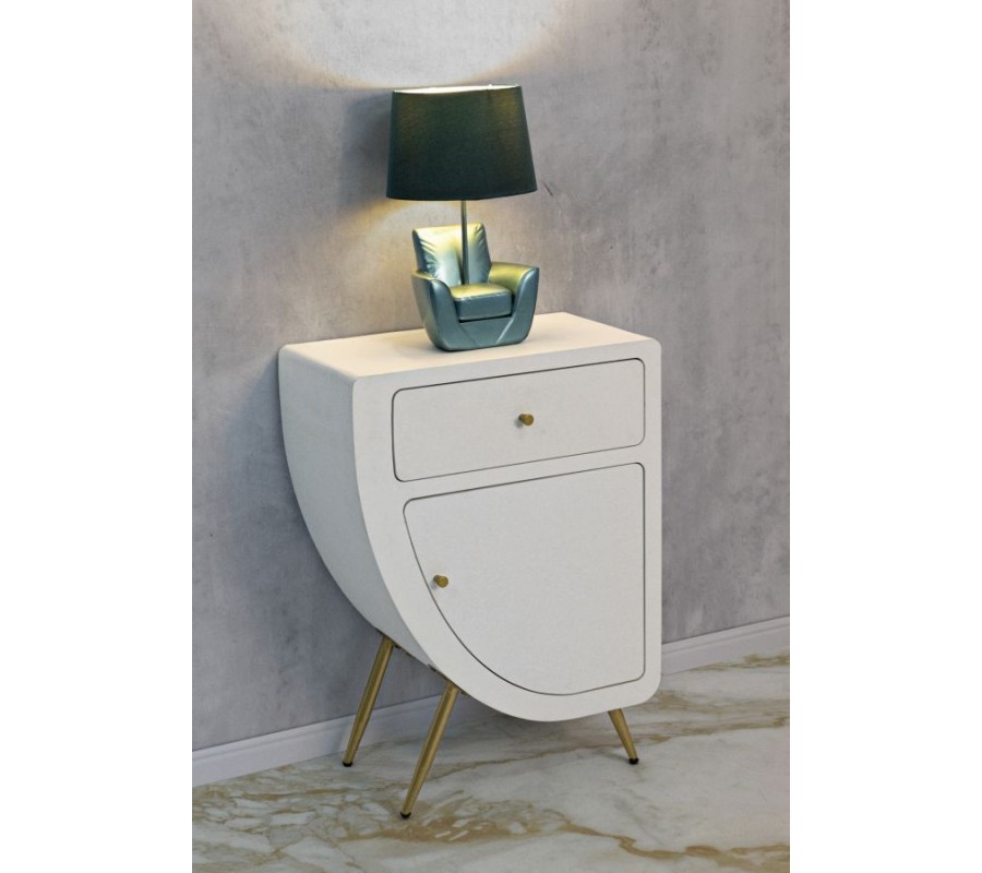 Nočný stolík Anila je elegantným a praktickým doplnkom, ktorý zaujme svojím atypickým dizajnom v polkruhovom tvare. Má jedny dvierka a jednu zásuvku, čo poskytuje dostatok úložného priestoru na drobnosti alebo knihy. Je vyrobený z dreva a lakovaný v jemnej bielej farbe, ktorá podčiarkuje jeho moderný a čistý vzhľad.