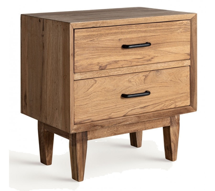 Luxusný vidiecky masívny hnedý obdĺžnikový nočný stolík Trevor s dvomi zásuvkami s výraznou štruktúrou letokruhov 61 cm