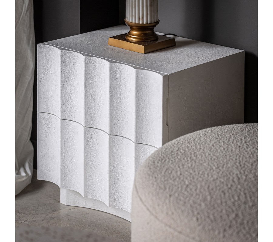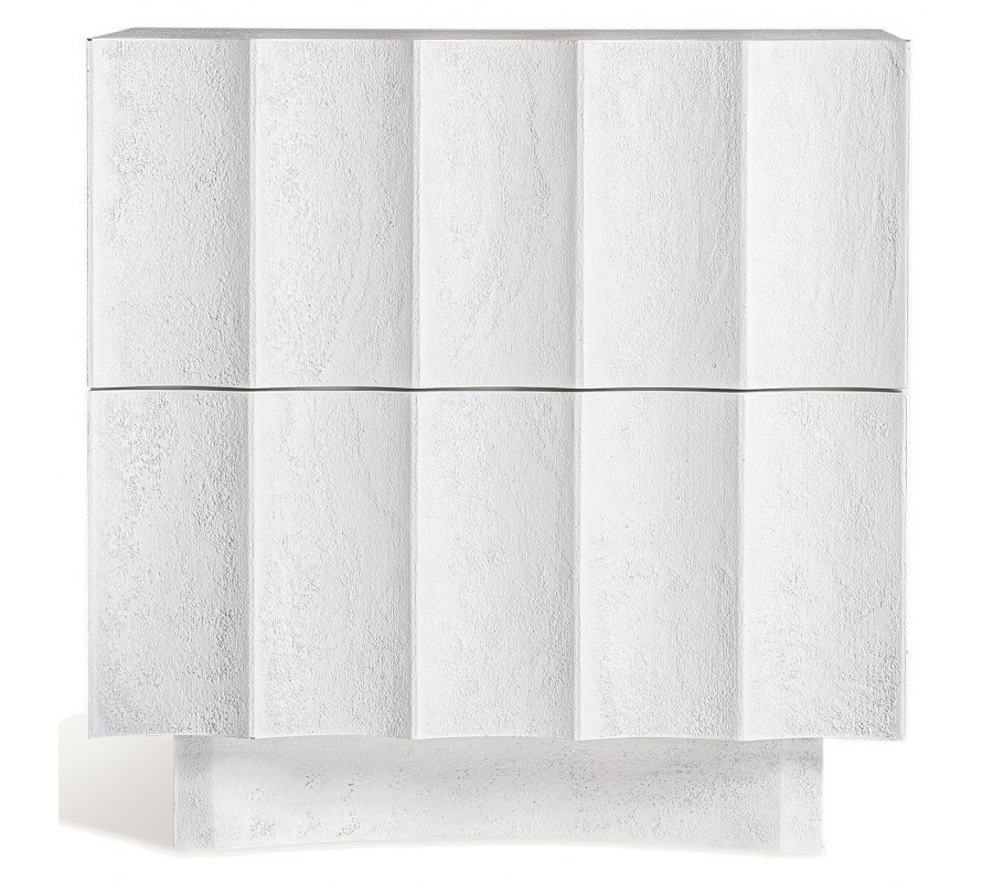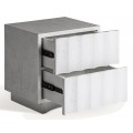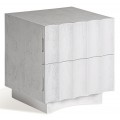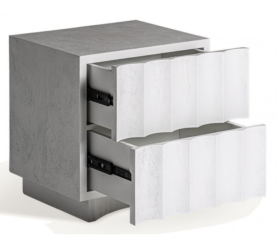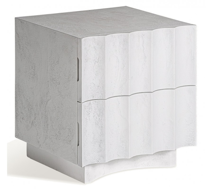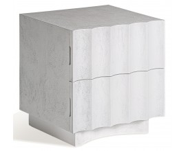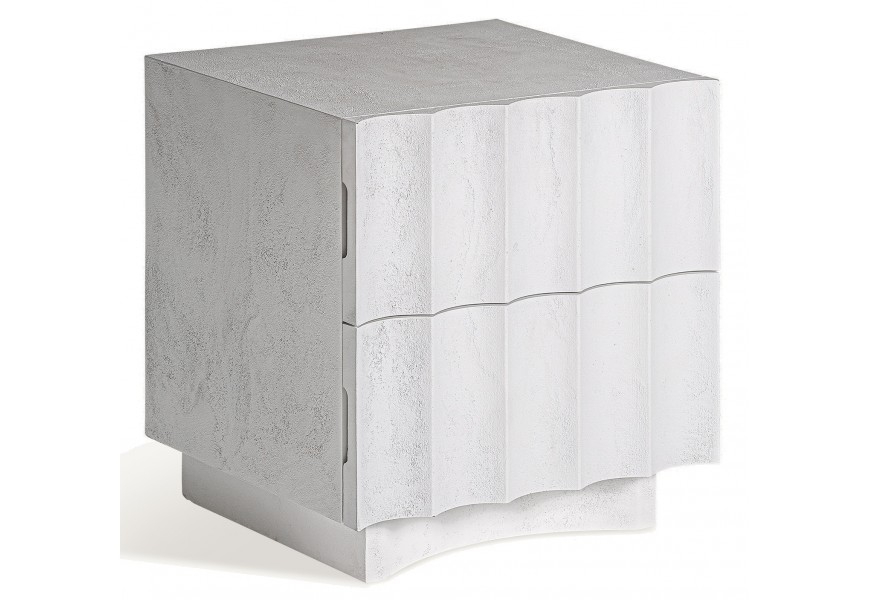 Luxusný art deco štvorcový biely nočný stolík Zarina s dvomi zásuvkami s betónovým efektom s vrúbkovaním 50 cm