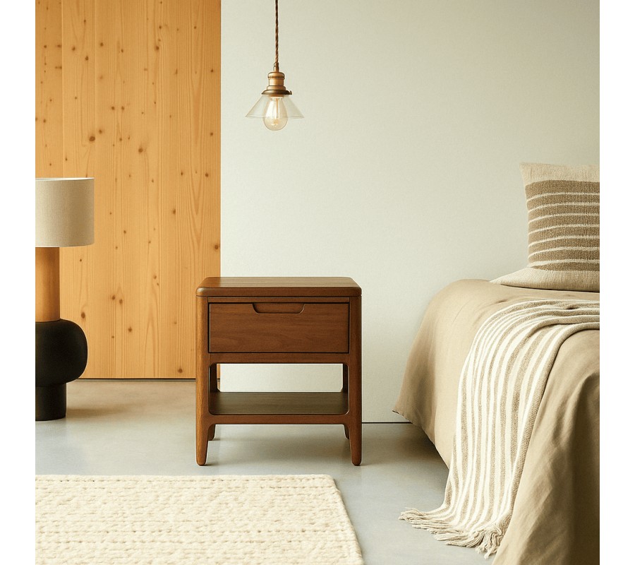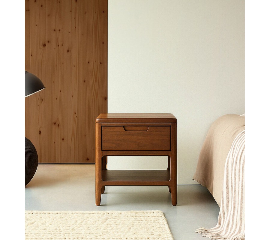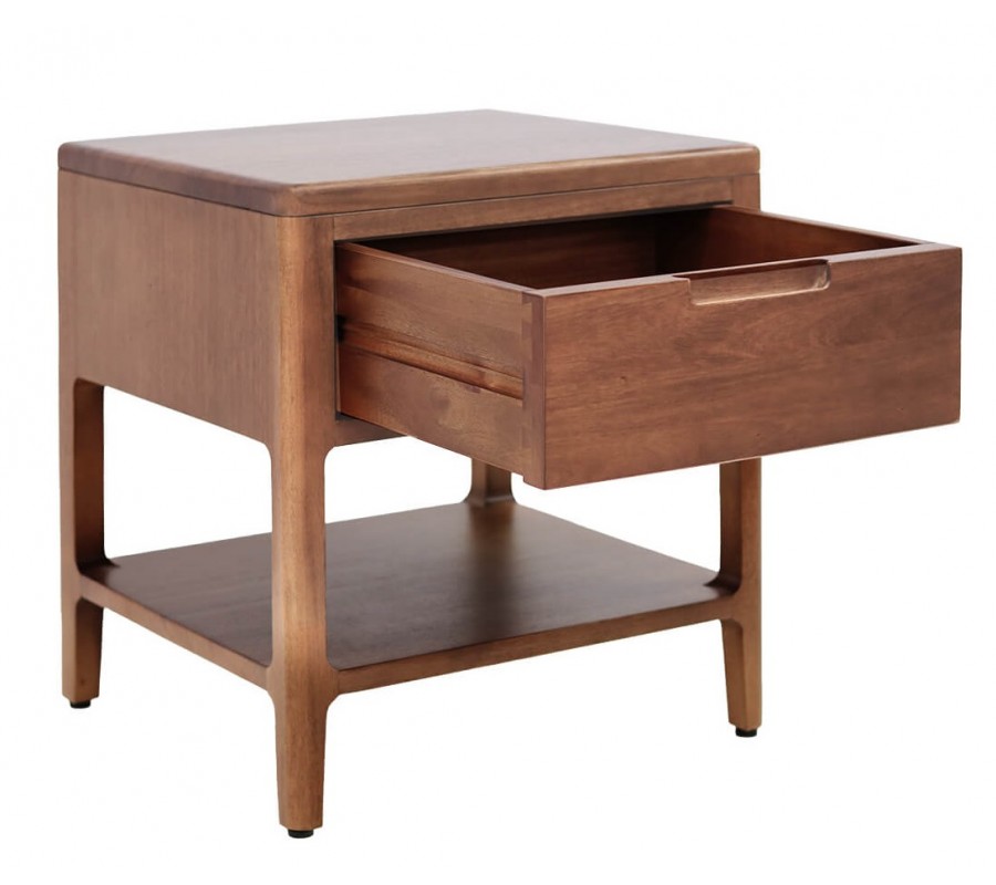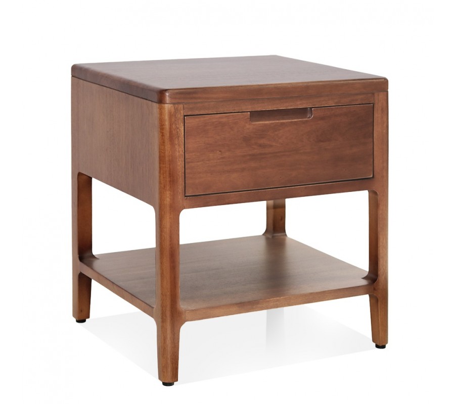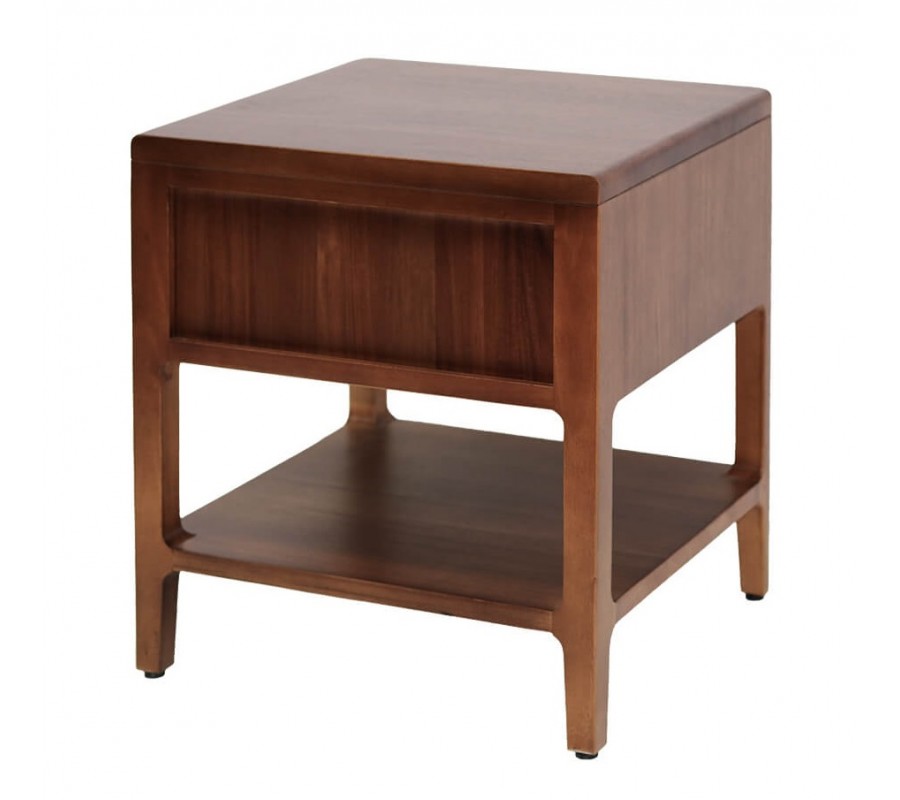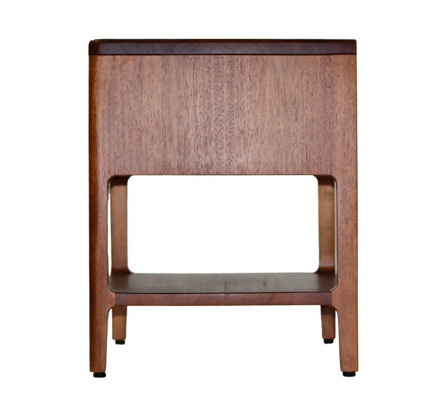 Luxusný moderný nočný stolík Liberia s jednou zásuvkou a policou z masívneho mahagónového dreva v teplej hnedej farbe 45 cm