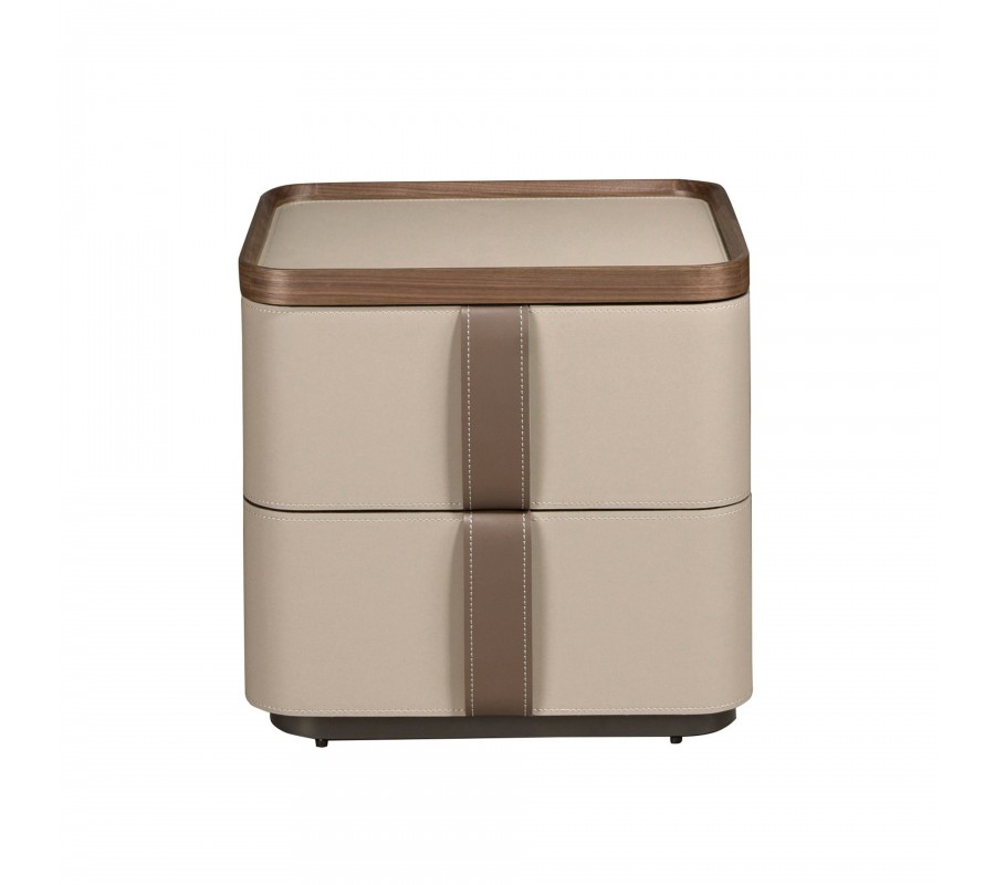 Luxusný moderný nočný stolík Charmoin s dvomi zásuvkami z orechovo hnedého dreva s béžovým poťahom z pravej kože 50 cm