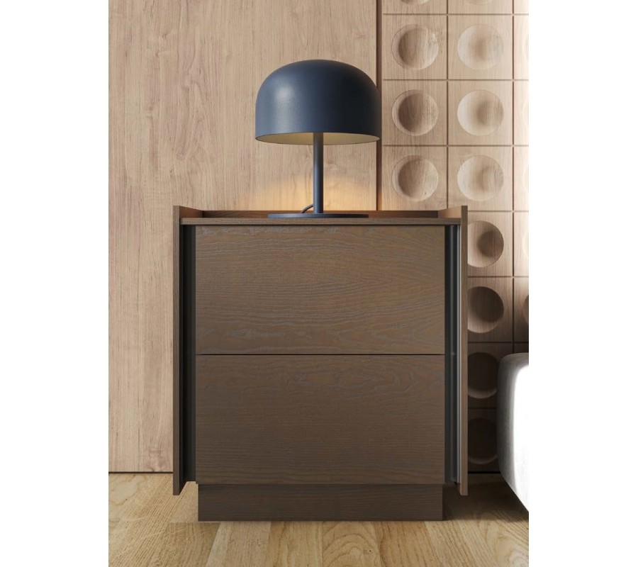 Luxusný moderný obdĺžnikový masívny nočný stolík Praga s dvomi zásuvkami a vyvýšenými okrajmi 61 cm