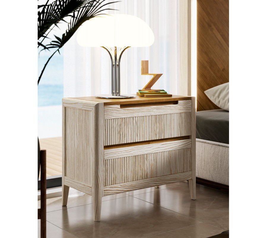 Luxusný art deco obdĺžnikový nočný stolík Tallin s dvomi zásuvkami s vrúbkovaným povrchom 70 cm