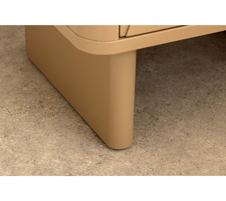Podstavu dvoria dve vyššie široké nohy. Vizuálne odľahčujú úložný priestor a ich zaoblené hrany výborne korešpondujú so zvyškom siluety. Dobrú stabilitu zabezpečuje lineárne výstuha vo vrchnej časti.