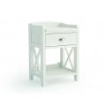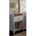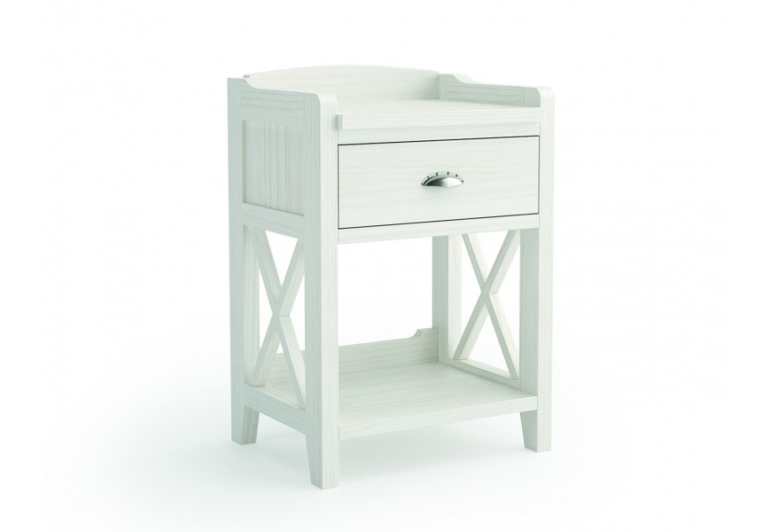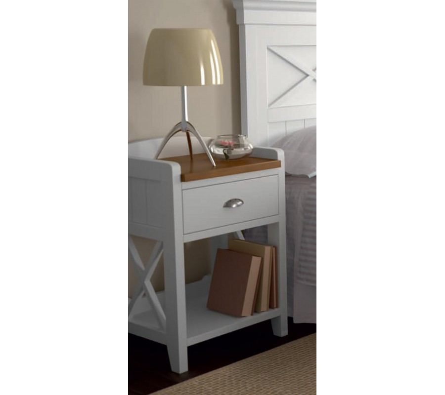 Štýlový a elegantný nočný stolík Verona z našej rovnomennej kolekcie inšpirovanej týmto romantickým mestečkom predstavuje prepojenie talianskej tradície s novými modernými trendami. Stolík je vyrobený z kvalitného masívneho dreva, pričom precízne ručné spracovanie zabezpečuje unikátnosť a dlhú životnosť. Vďaka jeho jedinečnému univerzálnemu dizajnu je vhodný na umeistnenie do moderných, ale i vidiecky či rustikálne ladených spální. Disponuje praktickou zásuvkou, poličkou v spodnej časti a povrchovou doskou vhodnou na odkladanie drobných predmetov, postavenie stolnej lampy či vystavenie menších dekorácií. Ponúkame možnosť výberu farebného prevedenia, pričom dostupné možnosti si môžete prezrieť v priloženom vzorkovníku. Elegantný vzhľad tohto kúsku je doplnený zaujímavý prekríženým dizajnom tvoriacim bočné steny. Nadčasový stolík Verona si svoje miesto zaručene nájde v luxusných spálňach v kombinácii s masívnou alebo čalúnenou posteľou.
