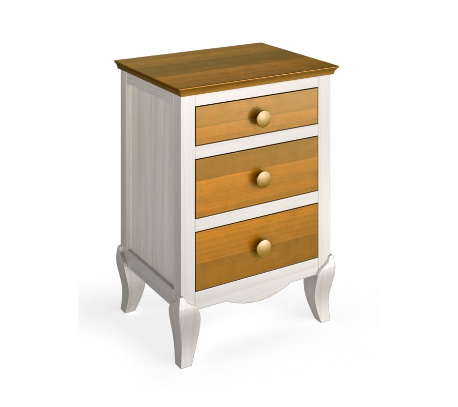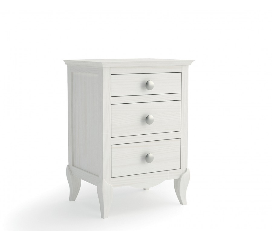 Elegantný nočný stolík Basilea z dreveného masívu s troma zásuvkami a zaoblenými nožičkami 70cm