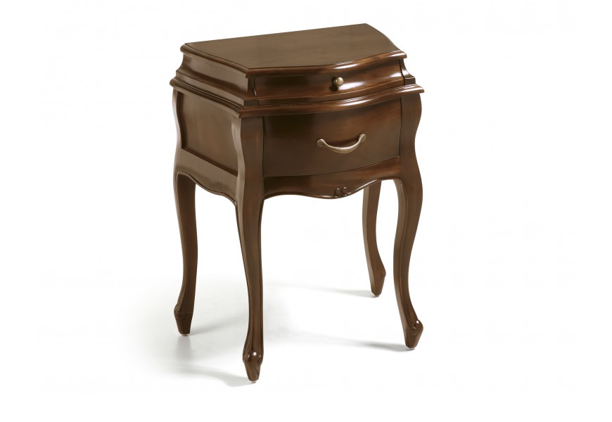 Exkluzívny nočný stolík z kolekcie M-Vintage je kúskom, ktorý predstavuje prepojenie koloniálneho, rustikálneho a vintage štýlu. Je vyrobený z kvalitného masívneho mahagónového dreva, ktoré je základom jeho luxusného vzhľadu a prevedenia. Povrchová úprava dreva tmavohnedej farby krásne vynikne v svetlých miestnostiach v kombinácii s ďalším masívnym nábytkom a textíliami v svetlých farbách. Stolík disponuje dvomi praktickými zásuvkami na uskladnenie drobných predmetov. Krásne vynikne v každej luxusnej spálni a do vašej miestnosti vnesie nádych histórie a štýlu vintage. Pre dokonalý dojem odporúčame kombináciu aj s ďalšími kúskami z našej jedinečnej kolekcie M-Vintage.